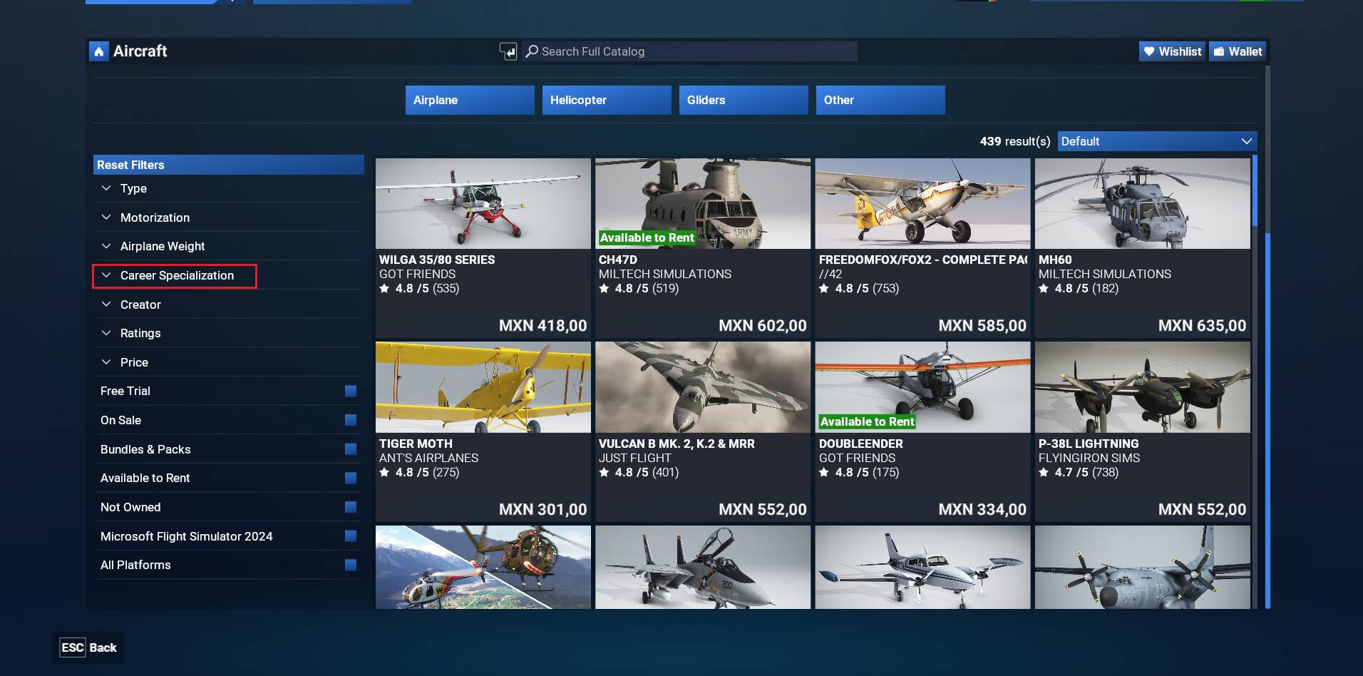Description of the issue: This may have been introduced in a prior beta build but I just noticed today - the Career/Mission Type filter from the Aircraft category of the Marketplace is no longer present. This was an incredibly valuable tool for quickly finding aircraft that were capable of handling specific mission types within the Career mode and I hope it was not removed inentionally.