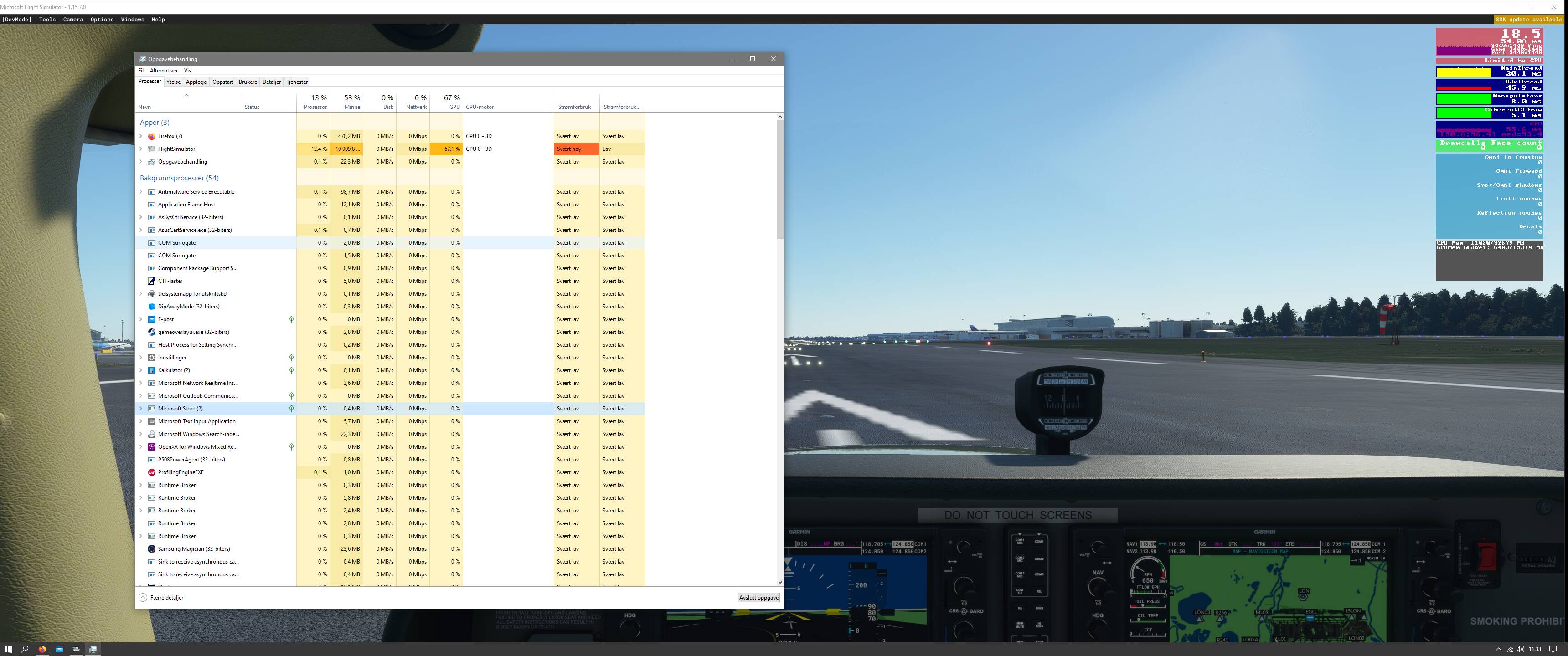 Could you make a screeshot when you are on 09R EGLL with C172 ( interior cam) with developer mode frame rate on. Also if its possible send a screenshot of your task manager / performance tasks