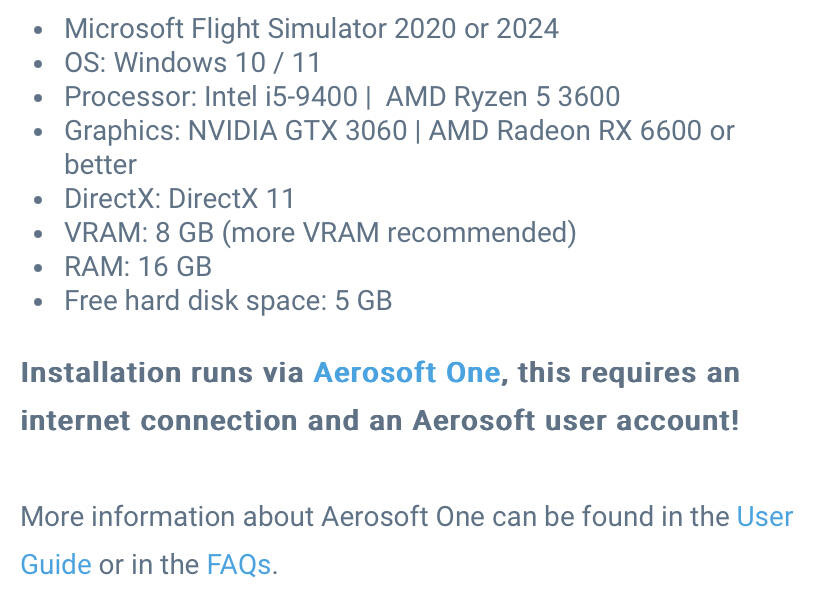 This is directly from Aerosofts store for that airport, they list a 30 series card and 8GB if VRAM (more is recommended)