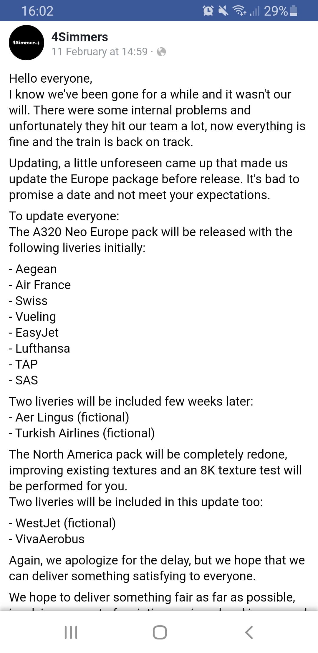 Quite⦠The only thing I appreciate from Bredok is having started the ball rolling but their liveries are so amateurish with errors that would take someone a second to spot by checking the actual liveries. Like most thing they do they come out fast and rushed with something we are desperate for and bank on it. To add to it they even mess up with sounds making the a320 worse than the default⦠Iāll wait.