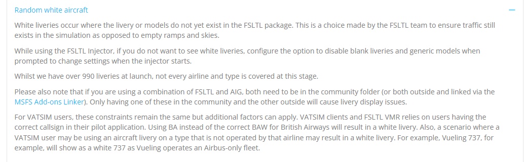 check with FSLTL discord ive never seen a blank livery while using it as that’s what the option is for unless of course its blank in real life.