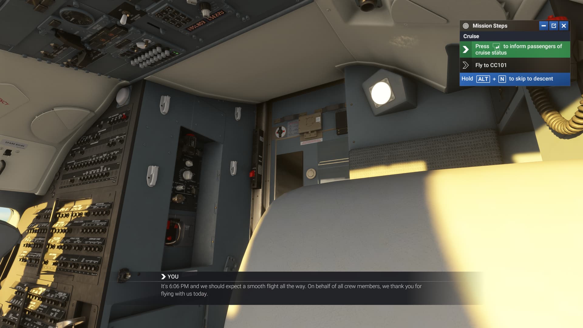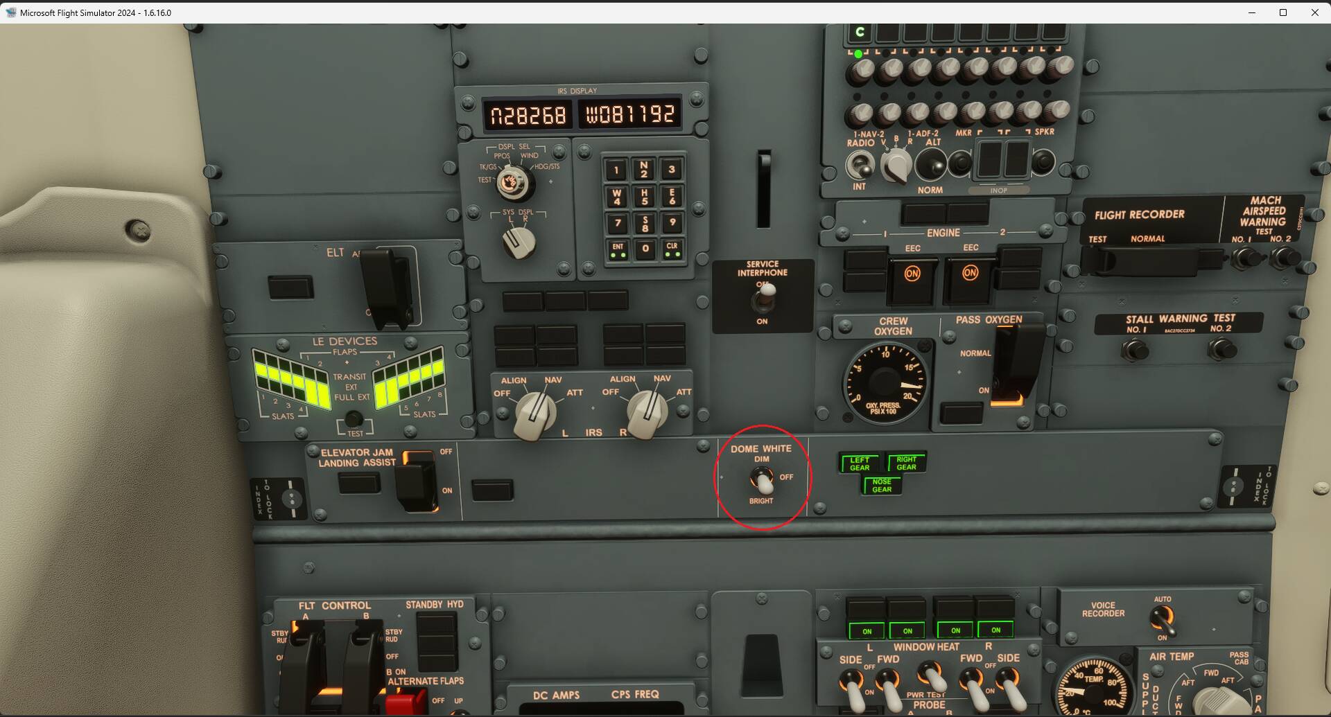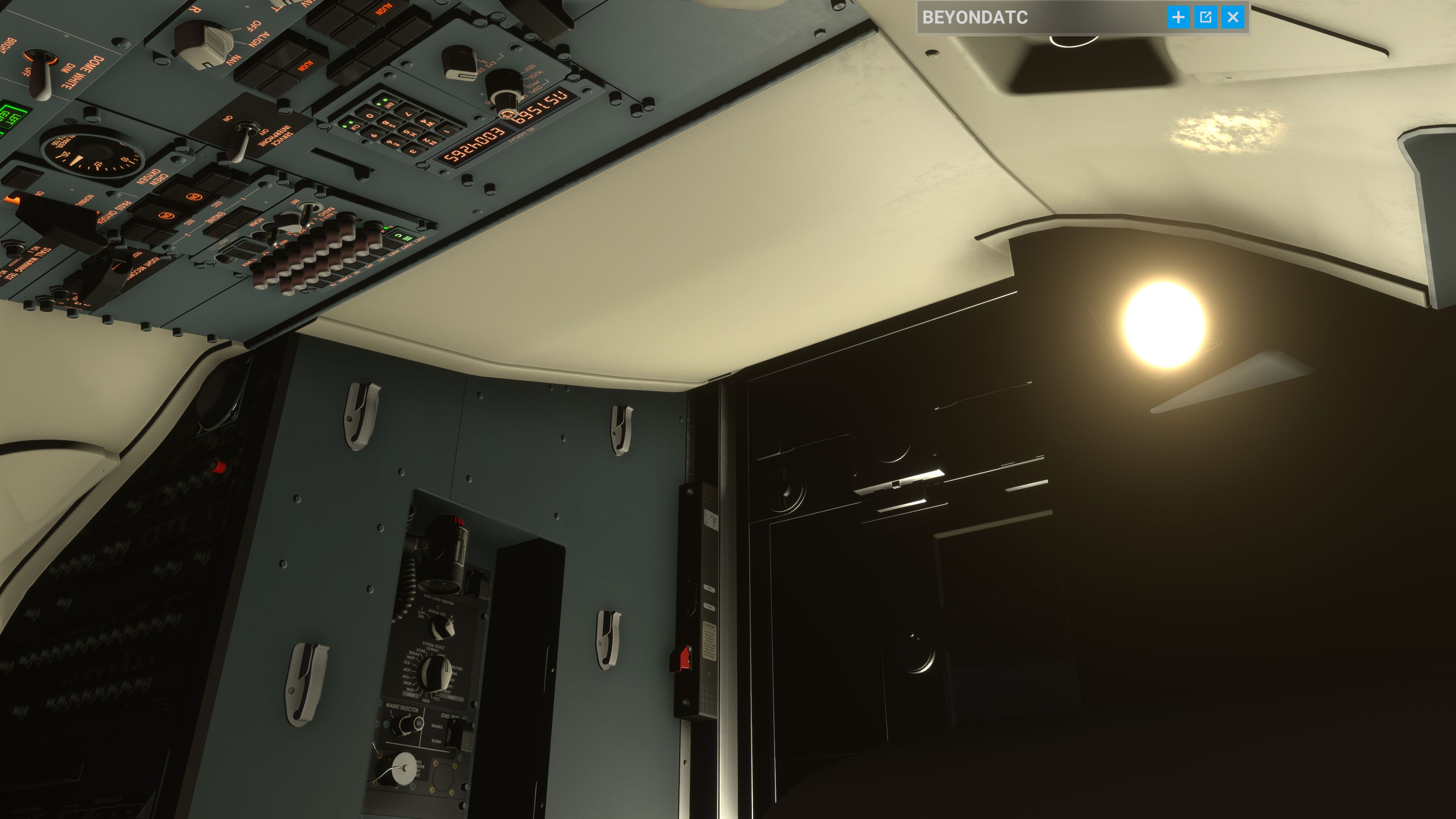 There are cockpit lights behind both the co-pilot and pilot. The co-pilot light is connected to its dial and can be turned off, but the light behind the pilot is not connected to the corresponding dial and stays brightly illuminated.