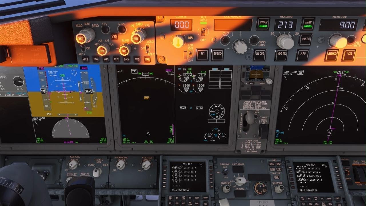 FCU status mid flight. Coordinates on PF FCU and PM FCU are identical. Right MFD works in MAP mode, left one shows only yellow MAP (this is close up on FCU’s, screenshot taken at the same time first screenshot above was taken).
