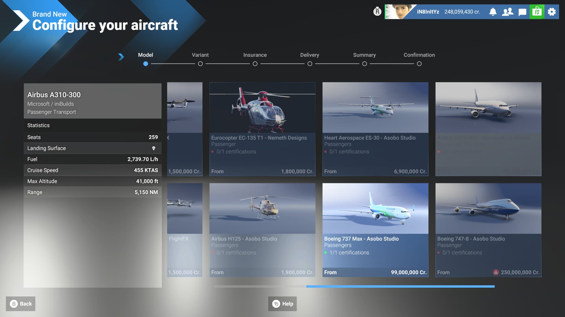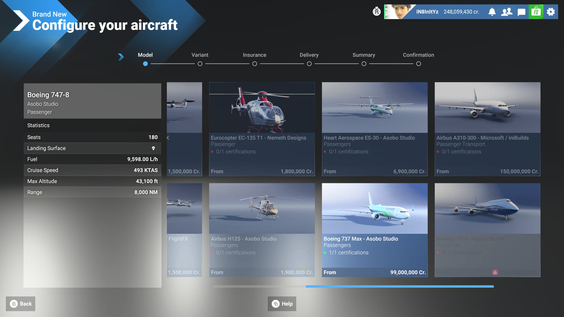 Description of the issue: Although the 747-8 can’t actually be used yet in career mode due to there not being a heavy airliner rating, when looking at the planes stats in the shop it only has 180 seats for passengers which is very off considering it is the largest Boeing aircraft, it should have 467 seats in a normal configuration. The A310 and 737 MAX 8 both have precise passenger seats listed on their stats and the A310 isn’t even out yet either so why shouldn’t the 747 have one? This is very concerning since less passengers means less profit in career so if the 747 comes out like this it will be worthless.