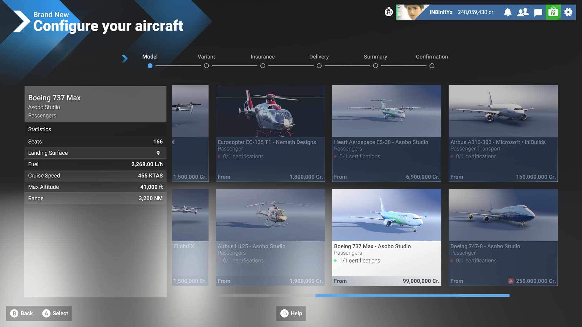 Click buy aircraft and go to new aircraft