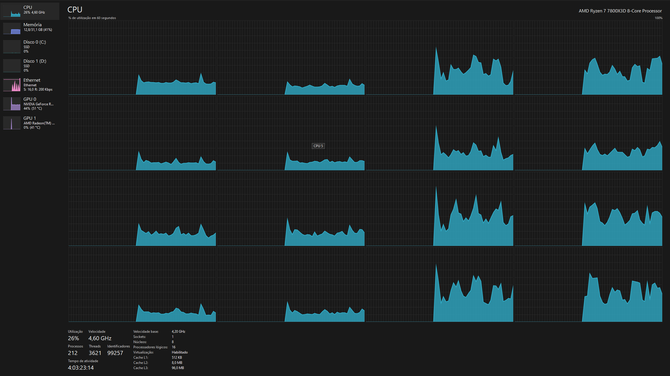 I doubt you will see any 8/16 cpu having problems with insufficient cores/threads, for gaming. Even if you use 3rd party softwares in the background. The 7800x3d usage here never goes above 30% when running MSFS. Using FSLTL, Fseconomy, littlenavmap etc.