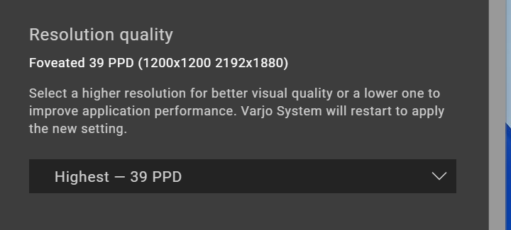 For VR testing I started out at the default Varjo 35 ppd resolution, which I always used on my old machine