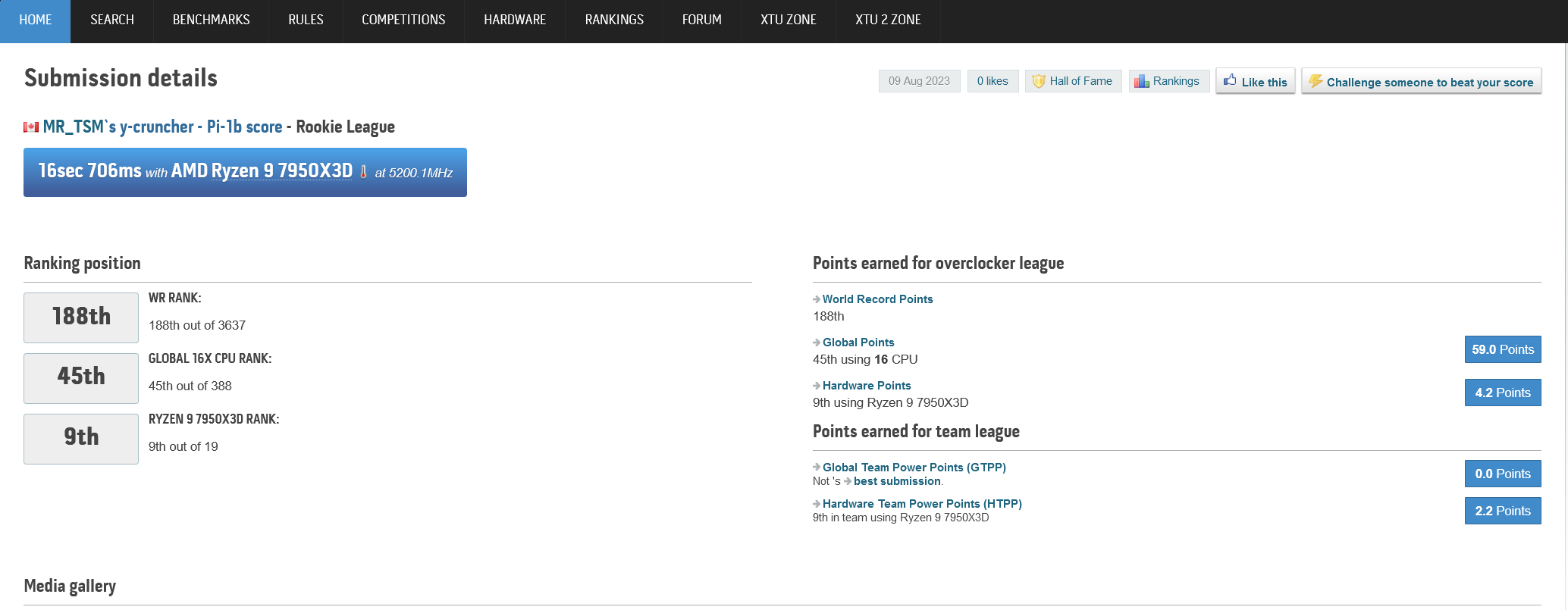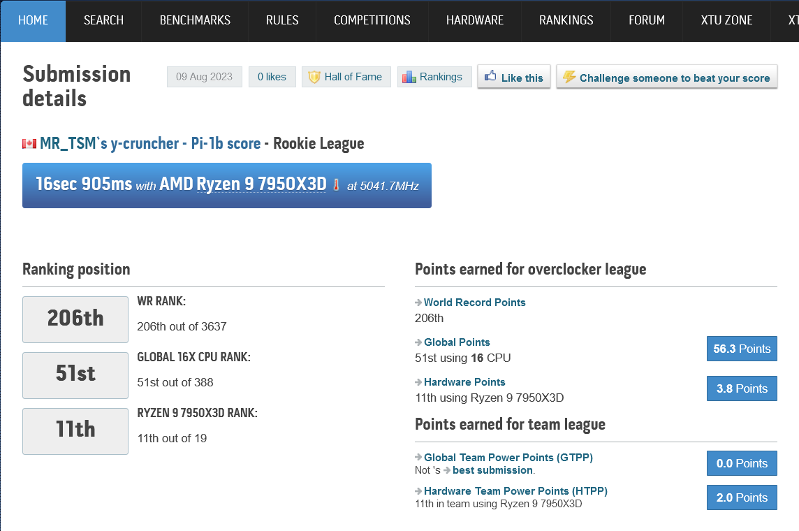 I only joined HwBot, and haven’t posted any subzero benches, so I’m in rookie league till my points go up. But those scores are vs the world. Pretty happy with my first AMD OC. Been an Intel guy for 20+ years since my last AMD build.
