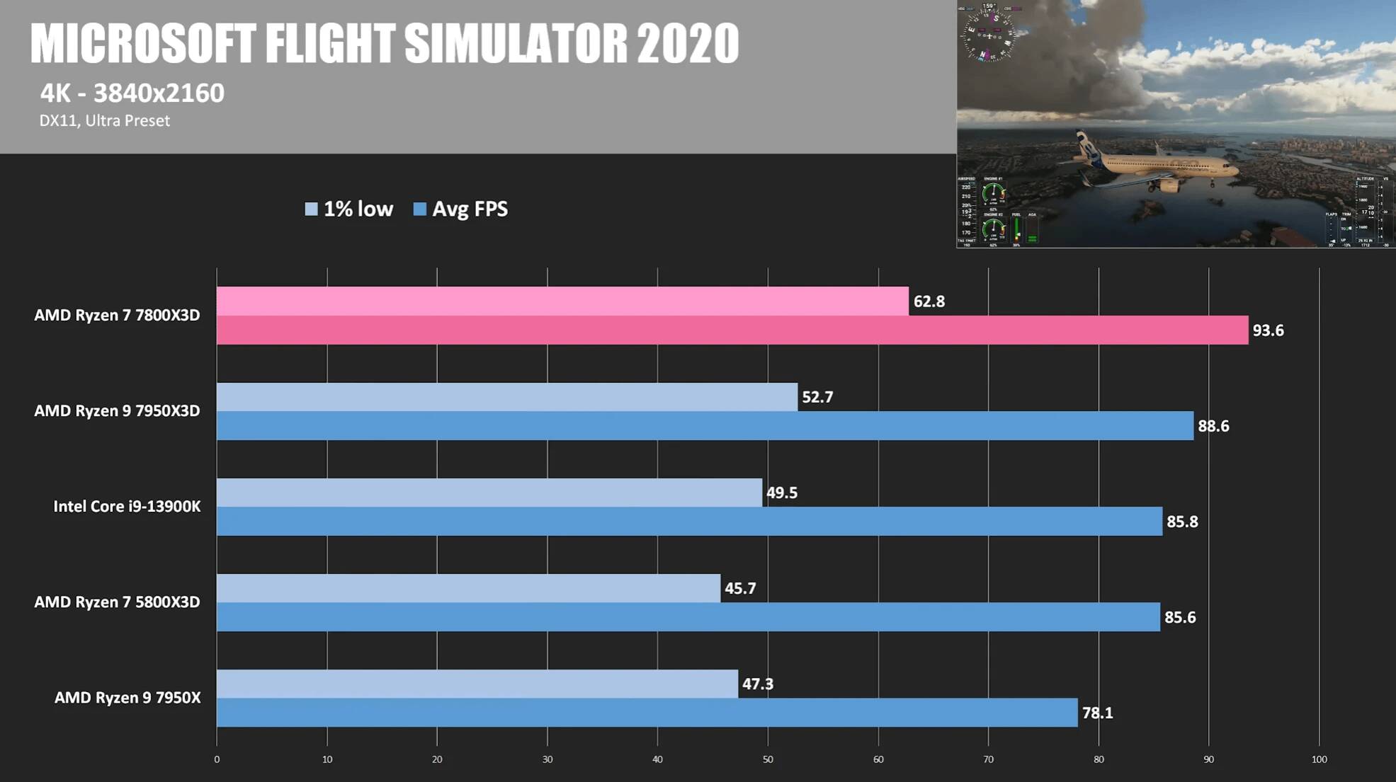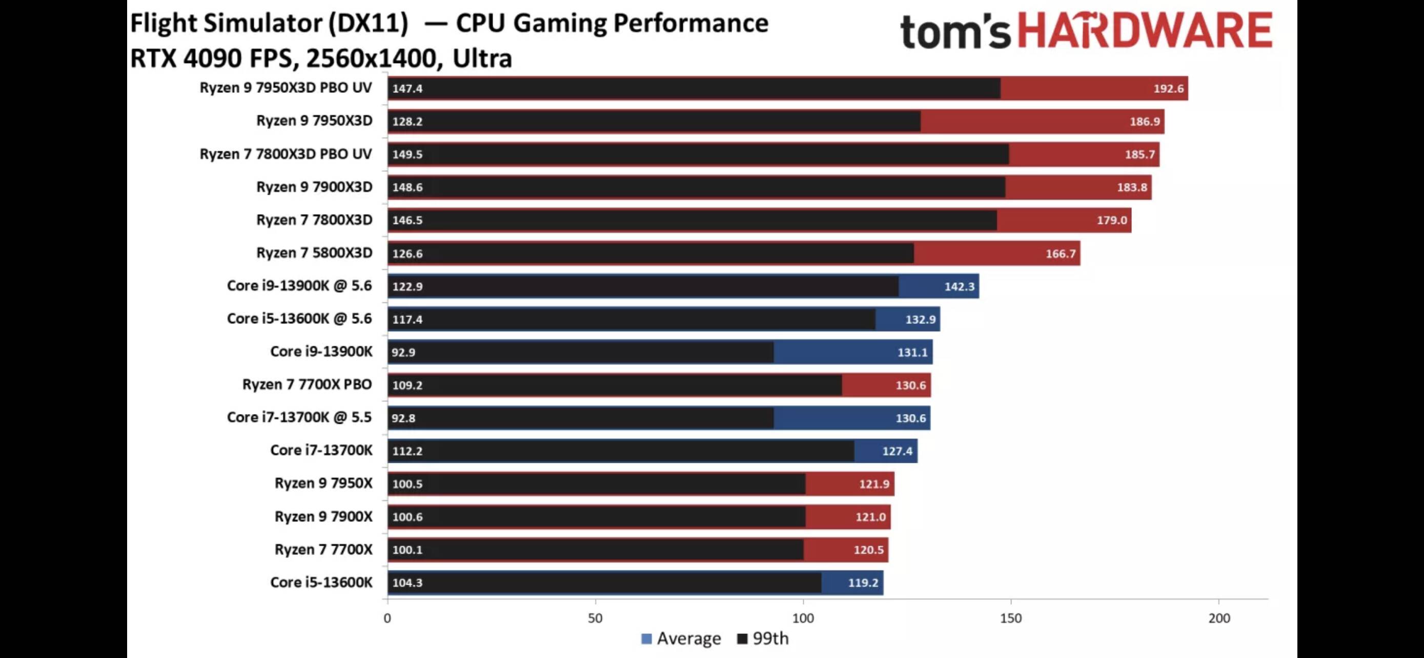In this particular topic, with several 7000 CPUs and MSFS. Of all reviews the latter benchmark you shared and the one I shared from Tom’s Hardware are very close in performance % to what I experienced with all the CPUs I tried with MSFS.