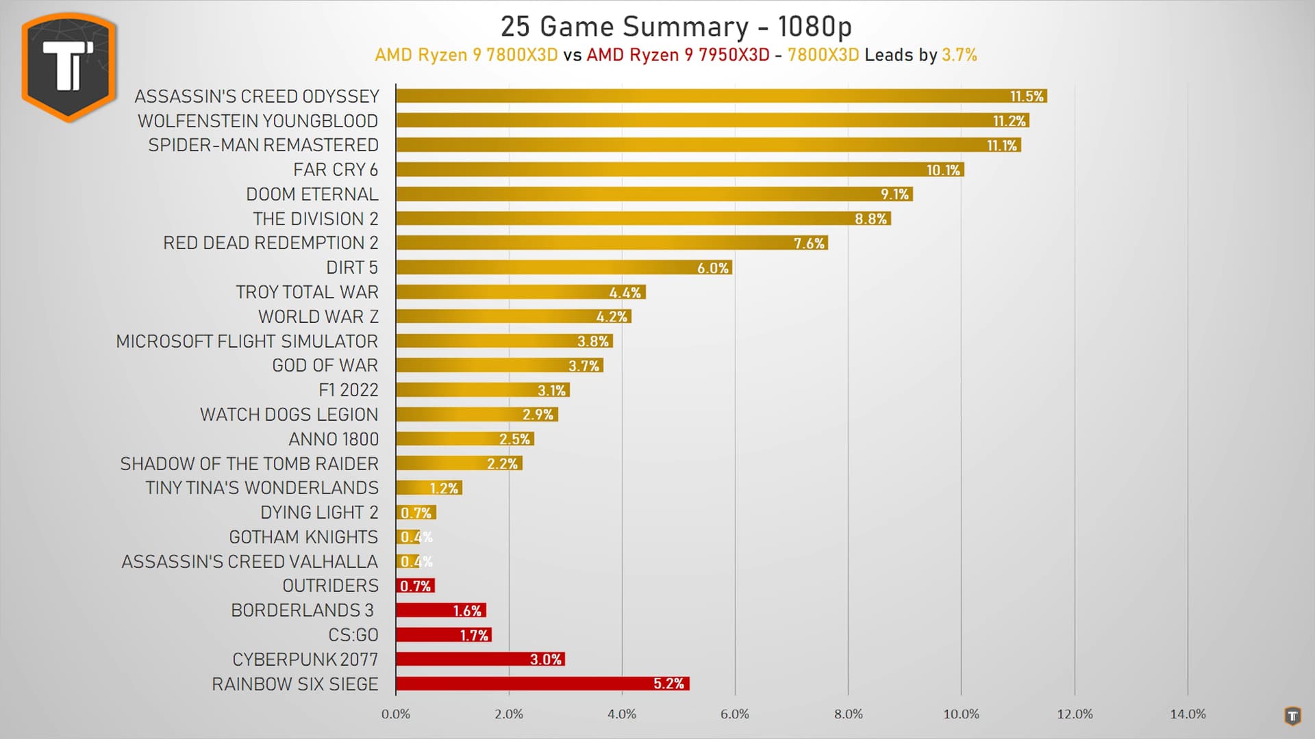 Then I read reviews and see benchmarks from Techtesters or Paul’s Hardware were the % it is almost marginal between the 7950x and the 7950x3D. A very round 10%.