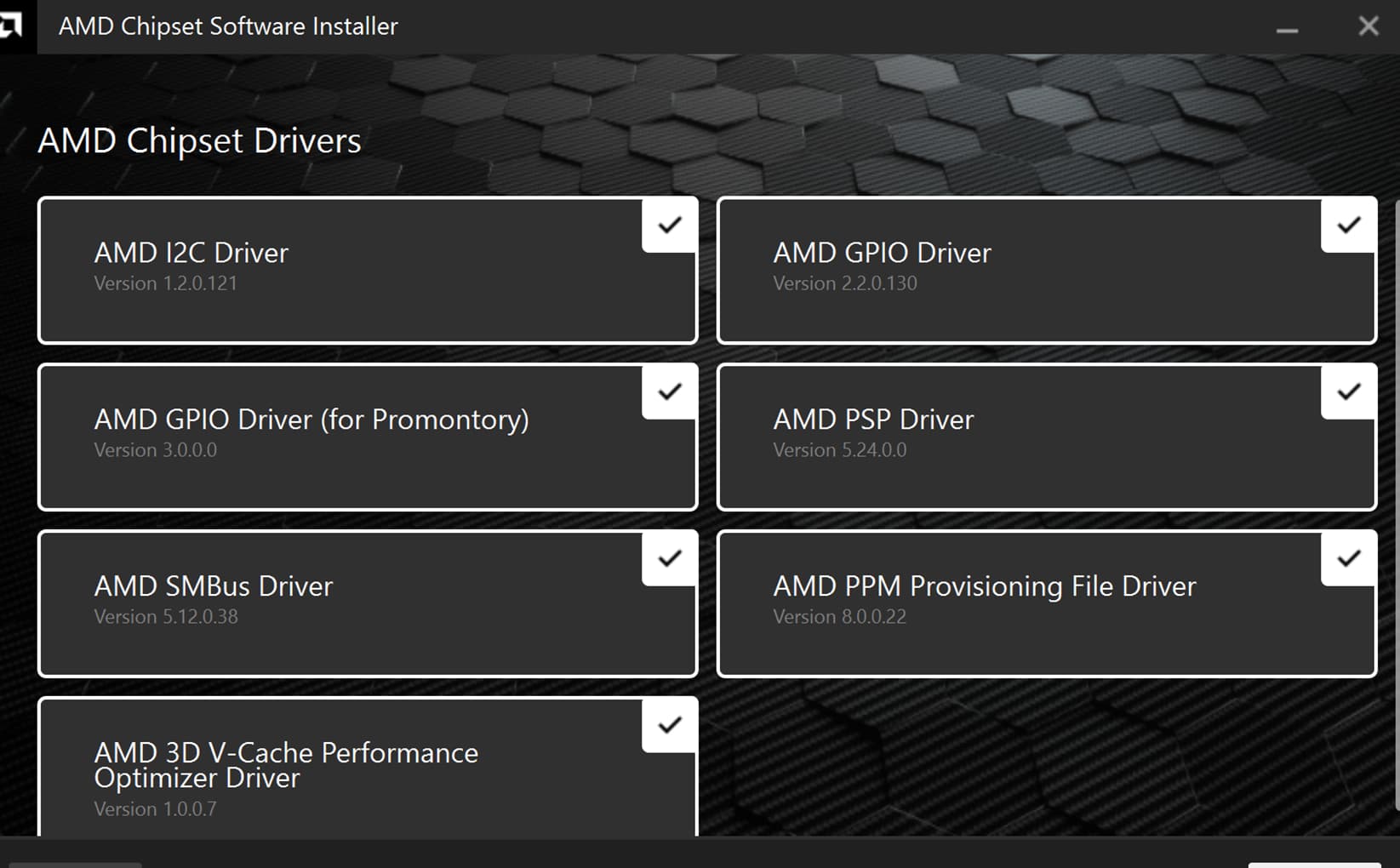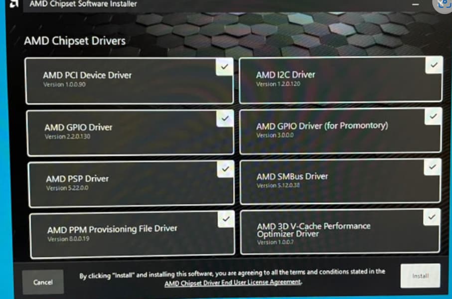 2)in terms of the amd chipset update(less important now but still intend to update them) when I run the amd updater it gives me the option to install 7 drivers (including the v-cache optimizer and not the 8 the guide I have been using is the suggesting?) the PCI device driver one is missing even though I seem to have some PCI devices on my build…(screen shots below)