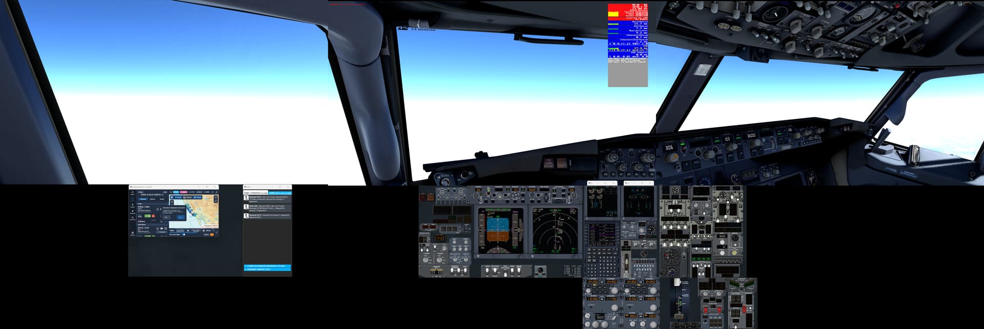 I’m at 6200 CL28 now. Couldn’t get 6400/28 or 6200/26 to work just yet. I might have a go at it, but it might not be much better. But I did get a 9+ hour y-cruncher stress test completed last night. All good! Here’s a peek at my screens with the three TVs and a bunch of Air Manager screens. I’m at FL360 over central California. TLOD325 OLOD200, everything else turned up to max possible. FSLTL, FSUIPC, SimHaptic and the Navigraph/Simbrief suite all running and pushed to CCD1. Needless to say, I’m pretty stoked. I actually saw 56FPS during descent into KSJC area. Seeing some weird stuff at different stages of the flight depending upon whether the sim or Air Manager is in focus. The benefit swaps between the two at various stages of the flight. More investigation… ![]()