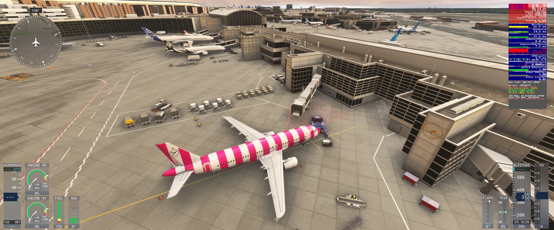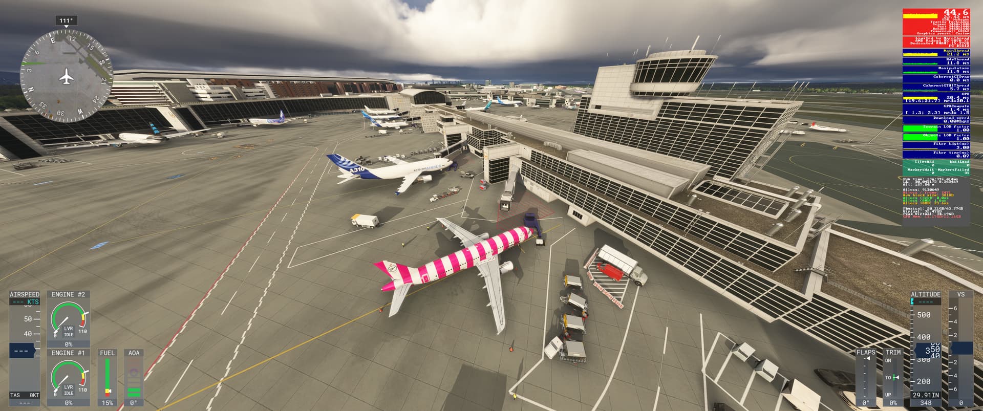 Before replacing my 4060ti I took some basic performance stats, and I repeated them once the RX9070 was installed. All tests were done in MSFS 2024 update 2 beta and all tests used the graphic settings optimized for the 4060ti, and unchanged for the RX 9070.