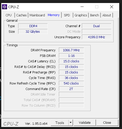 RAM: 32 GB (4 x 8 GB DDR4 3200 Mhz)