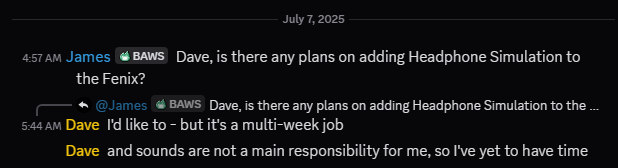 Anyone catch if it was mentioned or Amir has said anything about finally implanting headphone simulation directly into the plane vs the sim settings? I know this was asked a bunch on discord if we would finally see it with BFU.
