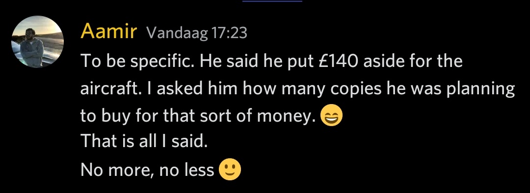 I thought this message would make this post explode, but is pretty calm here. I’ve bought too many great planes this week. This will be added to my hangar too… how do I find the time to fly them all?