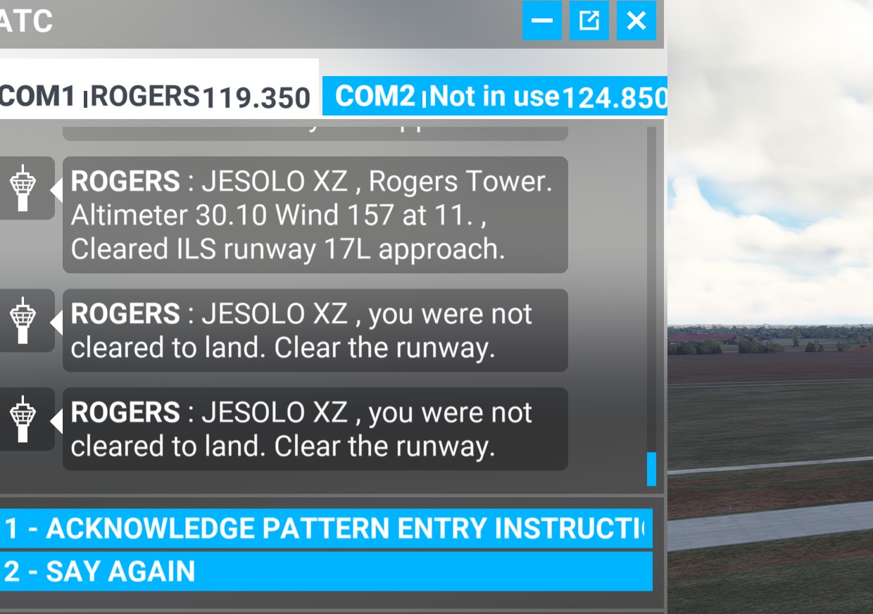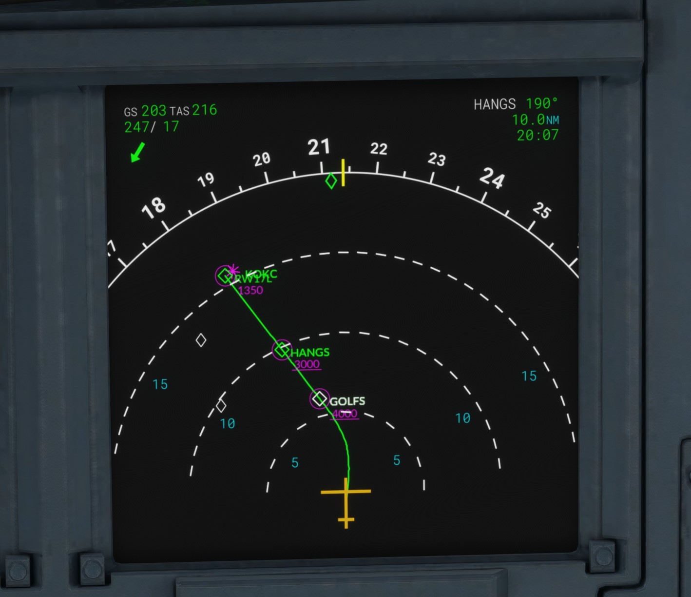 I know that ATC is well fitted of bags and have learned to disregard what is wrong. I’ve noticed the latest two in the flight ,just ended,of this thread : 1) which is the next waypoint in white letters ? Hangs or Golfs? 2) clear to land or not? see pics.