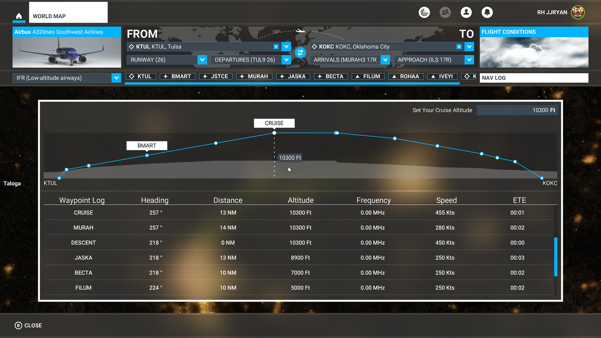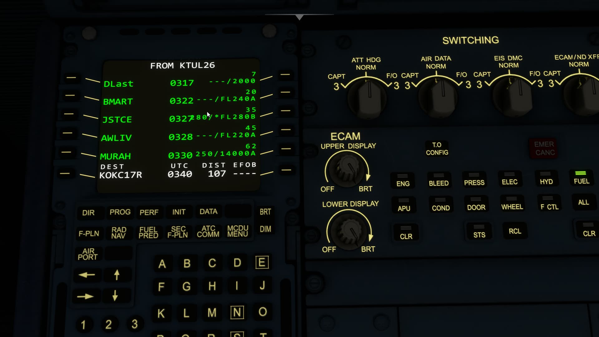 #4. Lastly, I have setup a flight plan in the World Map (IE: KTUL to KOKC using Low Altitude Airways) and set my cruise altitude at 10,000ft, however, the MCD F-PLN page showed the altitude at one point up around 28,000. This didn’t even match the default cruise altitude that the World Map automatically entered prior to loading in to the runway. Bug?