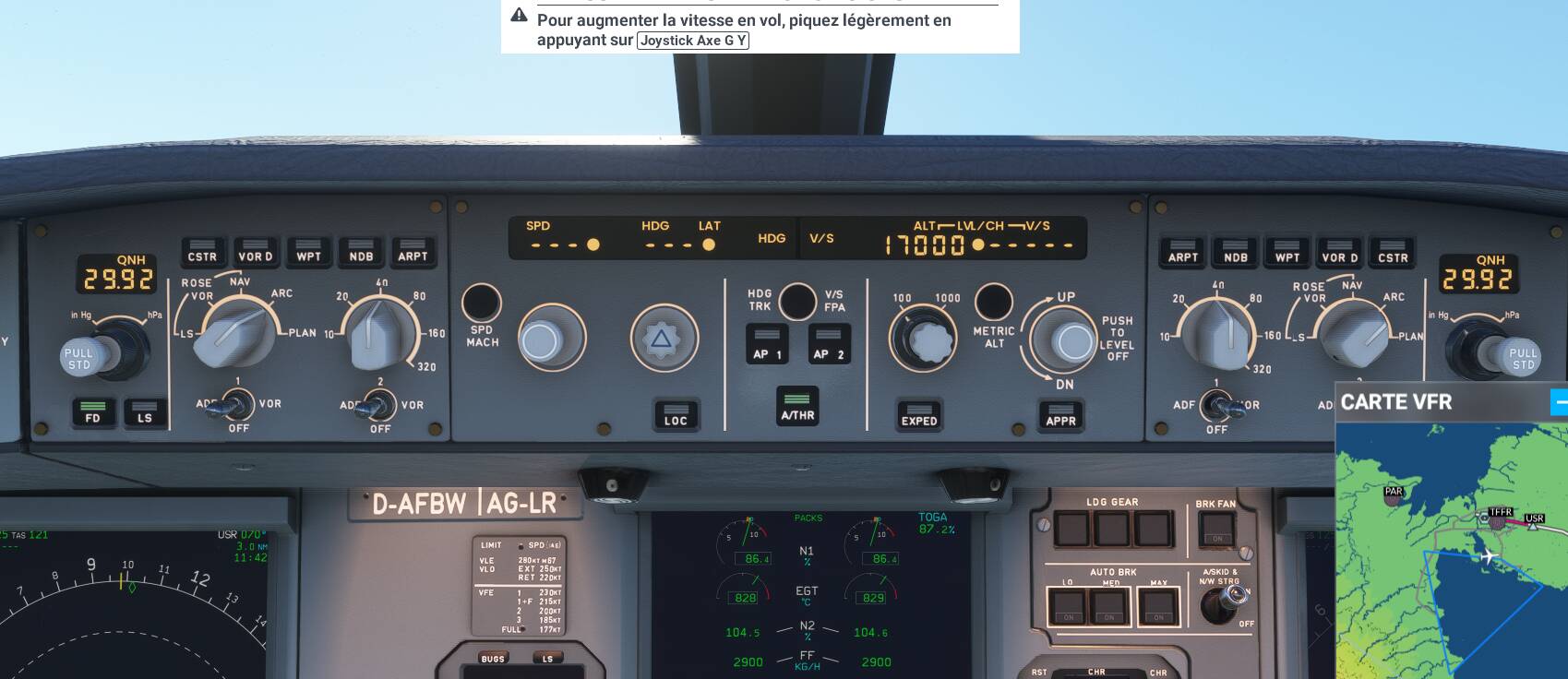 I’m using a joystick Thrustmaster Airbus and before each flight, I control on the EICAM the correct operation of the governs.
