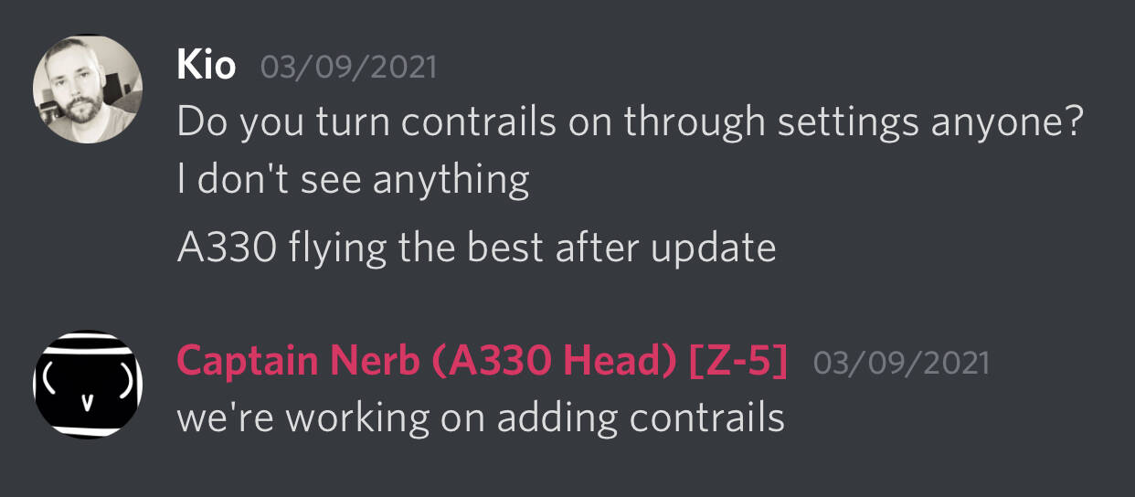 Hi, I was just wondering, if the contrails aren’t displayed with the A330-300. It is my 2nd long haul flight since the patch, and there are no contrails. Is it just because of the wrong conditions? Or regarded to 3rd party planes?