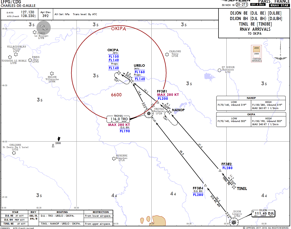 For the moment, I will not use these data and will not use the FMS for approaches, but the correct charts from Navigraph which in this case indicate: DJL, TRO, OKIPA and direct to CF27L