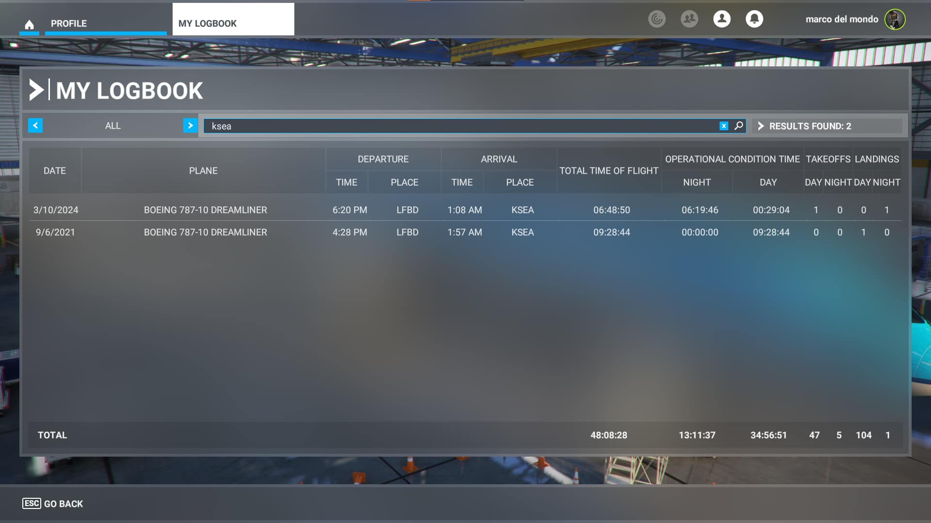 Complete flight from LFBD to KSEA gate-to-gate.