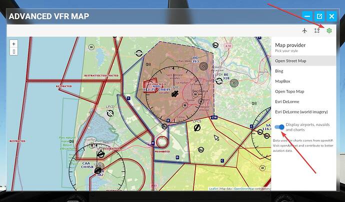 You can display it on any map, you just have to toggle the “Display airports navaids, and charts” switch on the config panel: