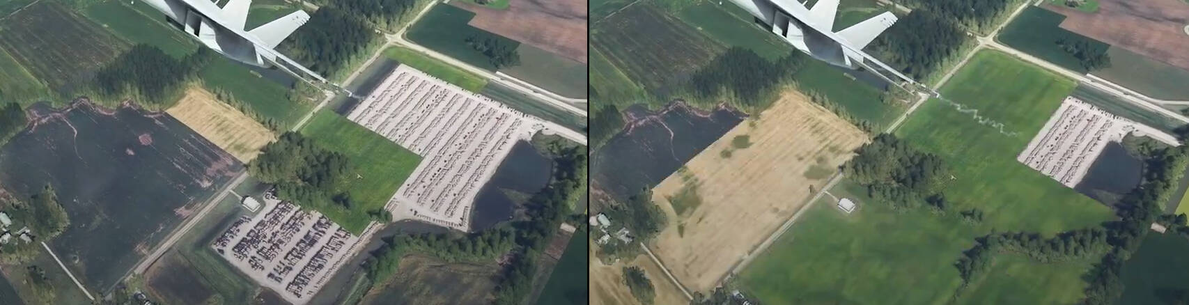 In the video above, you can see a parking lot from the most recent bing maps data disappear, which suggests that the issue is that the sim has satellite imagery from different dates that are competing with each other.
