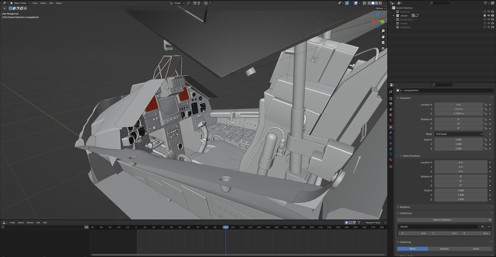This week I finished off cockpit modelling by making a seat model to replace the F-18 one I was using for scale reference, and adding the final bits of detail to the canopy and back wall of the cockpit. Now its time to start unwrapping and texturing.