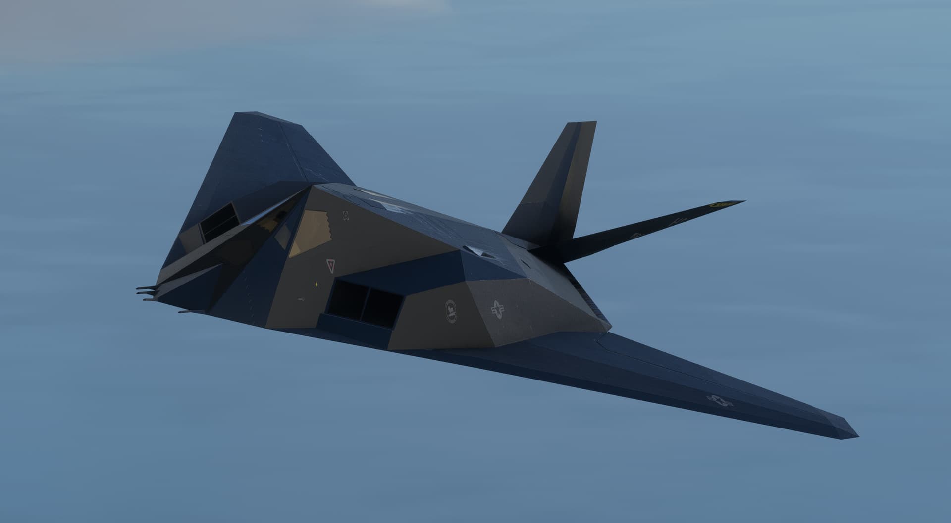 A lot of the F-117’s components were taken from other planes, as it was easier to do (as well as to hide the purchases back when it was top secret). The landing gear is from the F-15, and the engines are from the F-18.