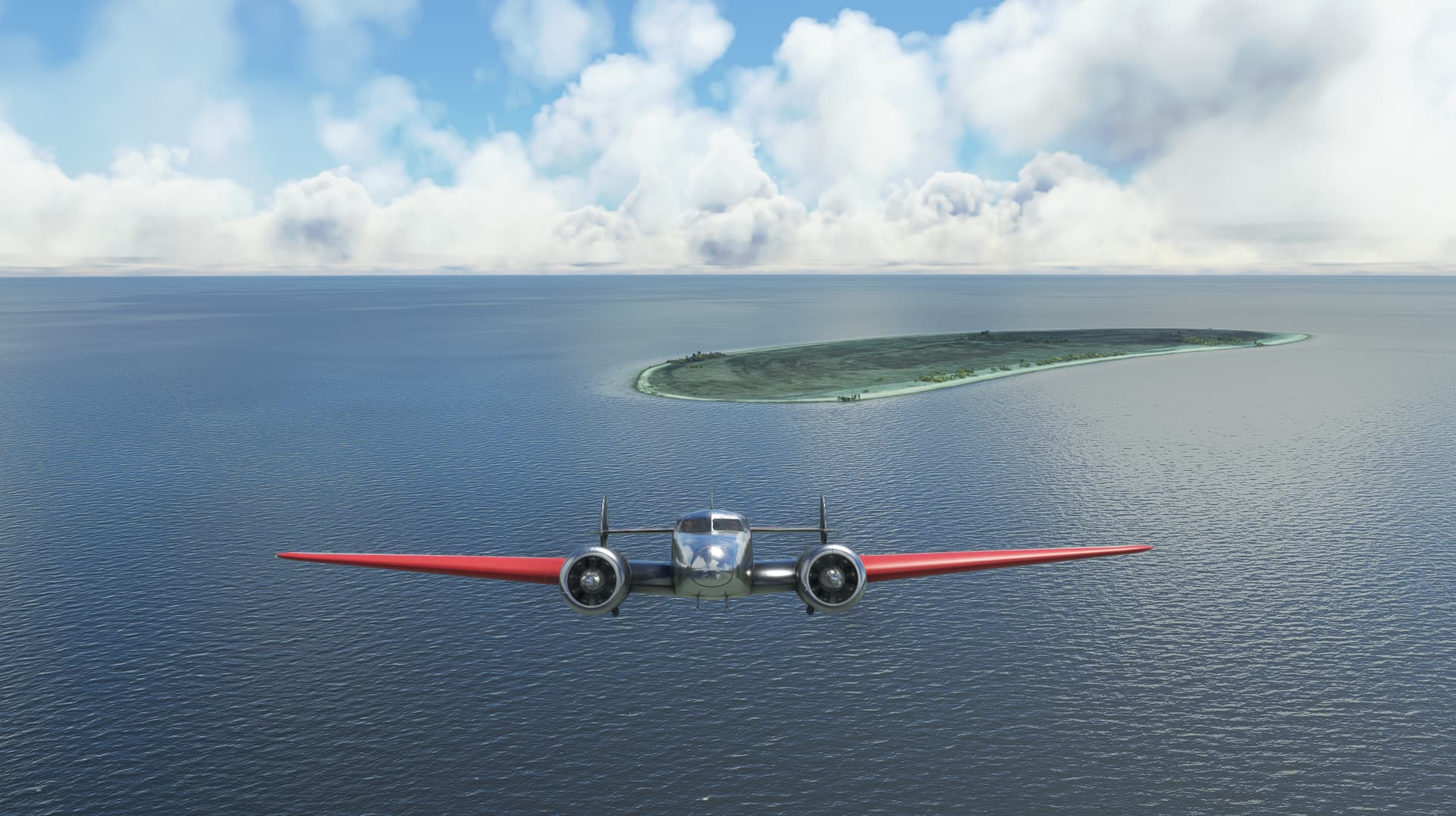 At the time I flew it, there was no strip on Howland Island (her last stop that she missed when she disappeared), but I flew there and landed anyway on the dirt. Then I went from there to the nearest island that had fuel (in OnAir) to top off with fuel just to keep it legit. It really was a lot of fun to retrace her flight in this bird!