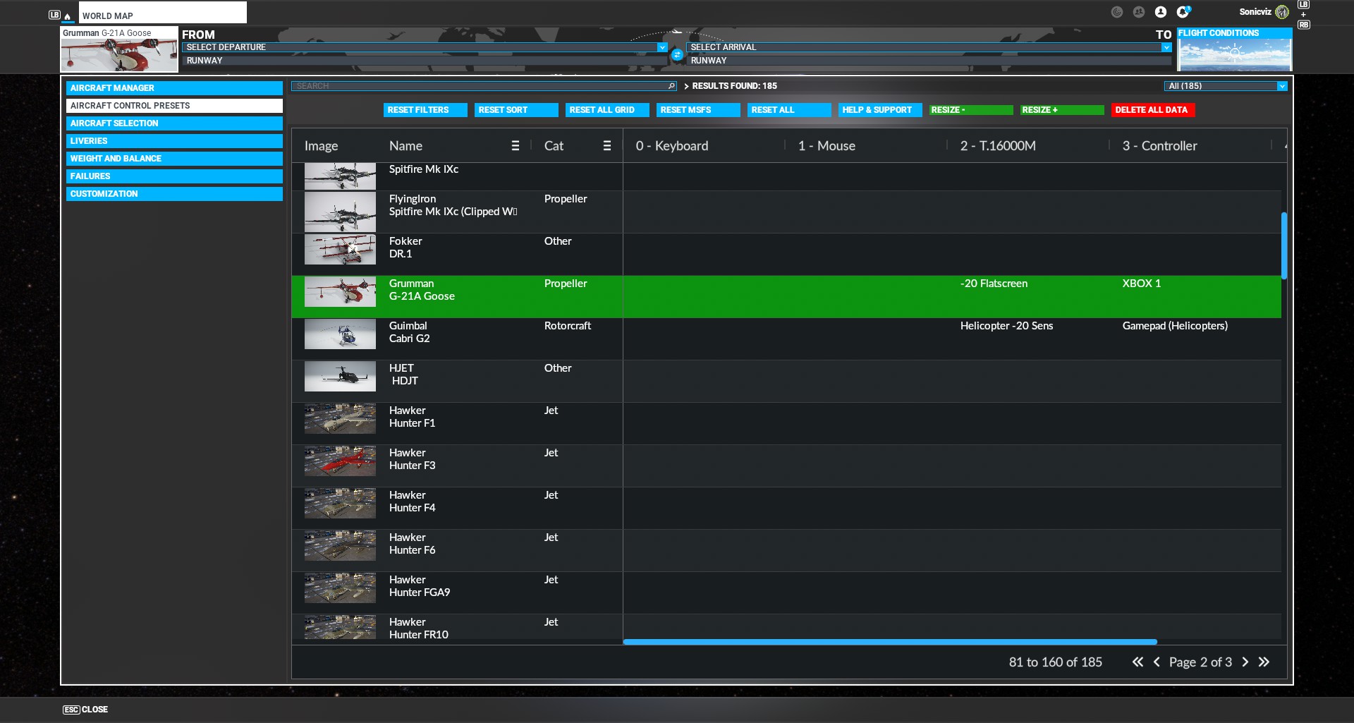 Could you elaborate a bit more on how you would see it working, from setting control profile setups to aircraft, then all the way through to hitting the fly button so an aircraft has all its selected presets activated? How do you see it working within the context of the current Aircraft Selection and Control options UI? What would it look like, and how would it flow in terms of user actions to get it done?