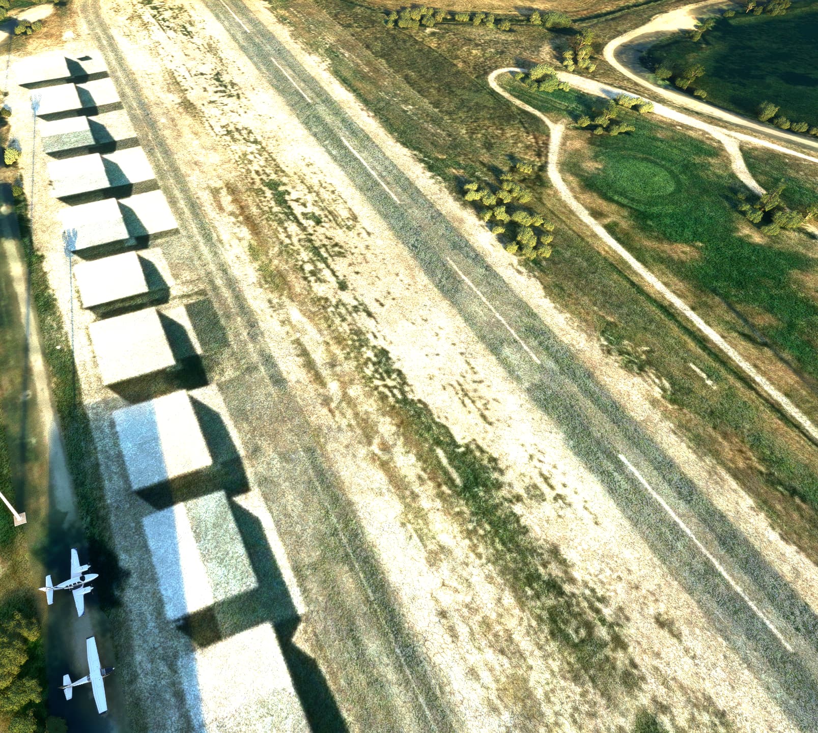 But when I zoom in, all that disappears and I’m left with a barren stripped airport like this: