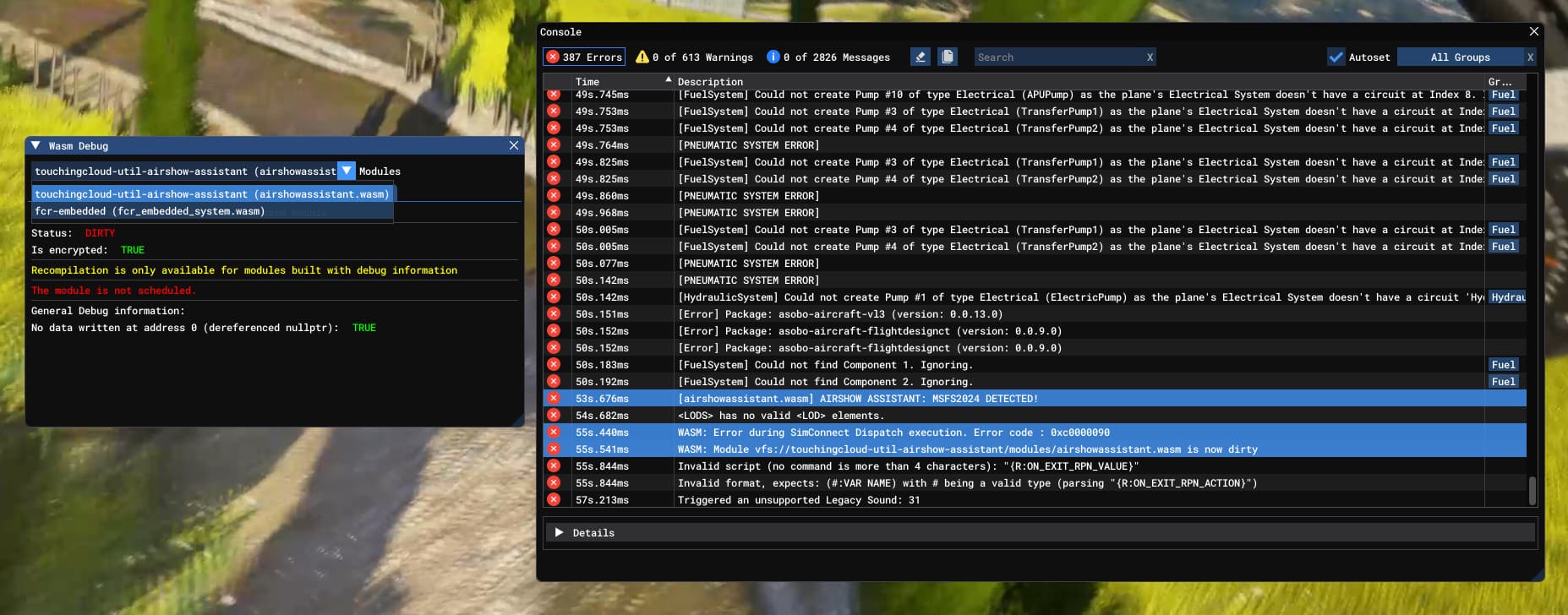 Maybe this helps, the module gets dirty even before pressing Start after launching the sim. No other WASM modules installed (other than the default FCR)