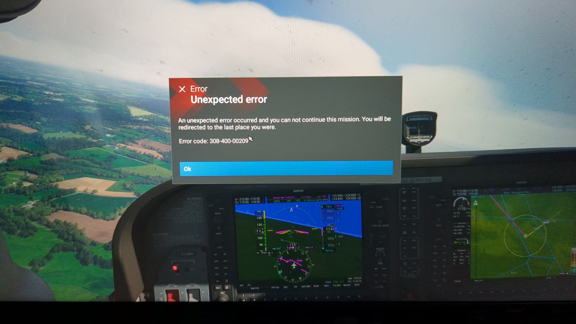 Today is 08 Ian 2025, i made 4 flights with the 172 in career mode, al eneded with “unexpected error” 2 of them had SIM RATE, 2 of them didn’t, between flights i restarted the computer, the la error screen looks like this: