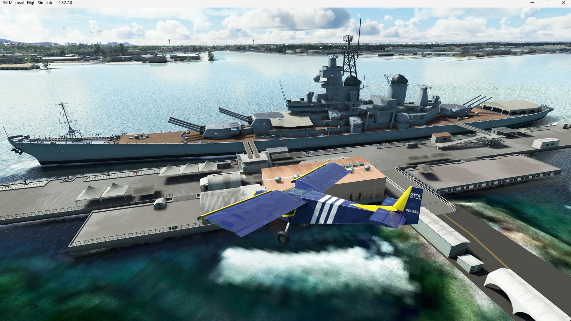 I downloaded this new version tonight after work - excellent job with the new elevated guns on USS Missouri. Thank you! Now, if you could just model in the pier and quay alongside, that would be the only thing I’d ask, or find a way to “unmask” the WU13 pier that Asobo included with their Missouri.