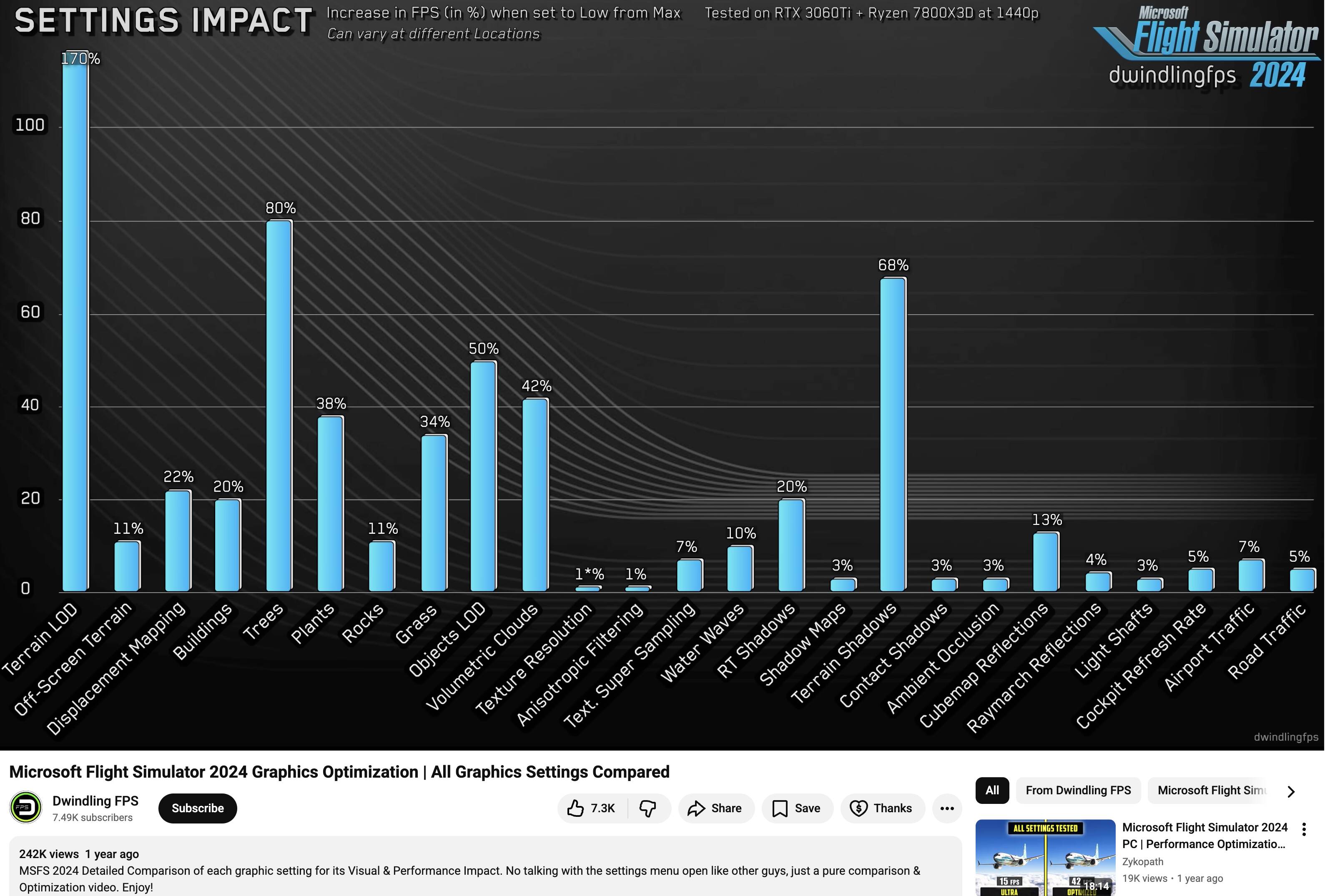 I understand TLOD and LOD have the biggest impact, but I had no idea that Trees and Terrain Shadows were using so much processing compared to other settings (although it makes sense).