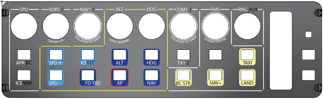 I already have COM1, NAV1 and a control for the CRS/HDG bugs for AP. Also, not to brag about it but YES bragging about… got yesterday my Honeycomb Alpha Yoke… and with the CRS/HDG hardware bug I have no issues with the 10 degree issue people is reporting.