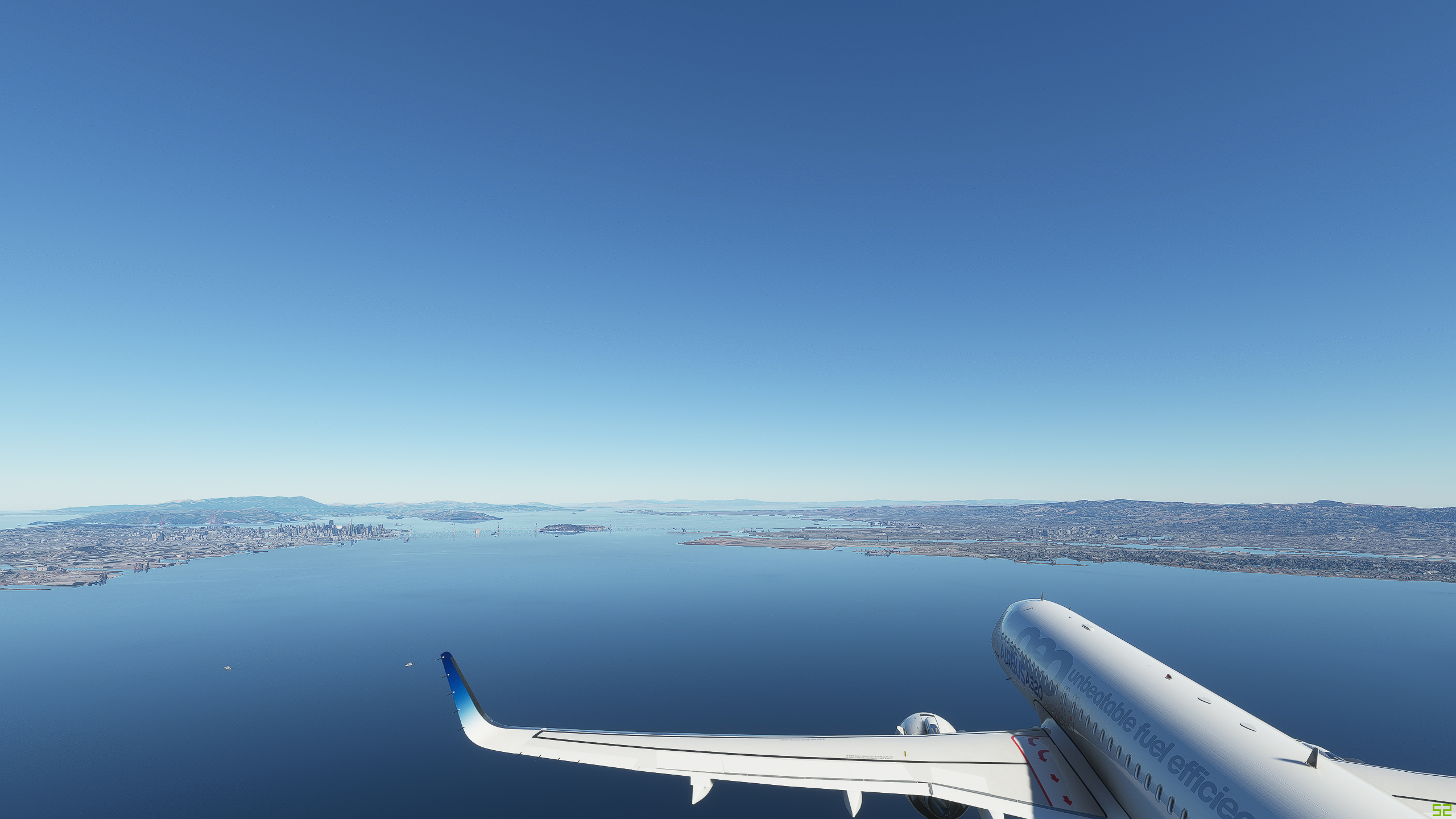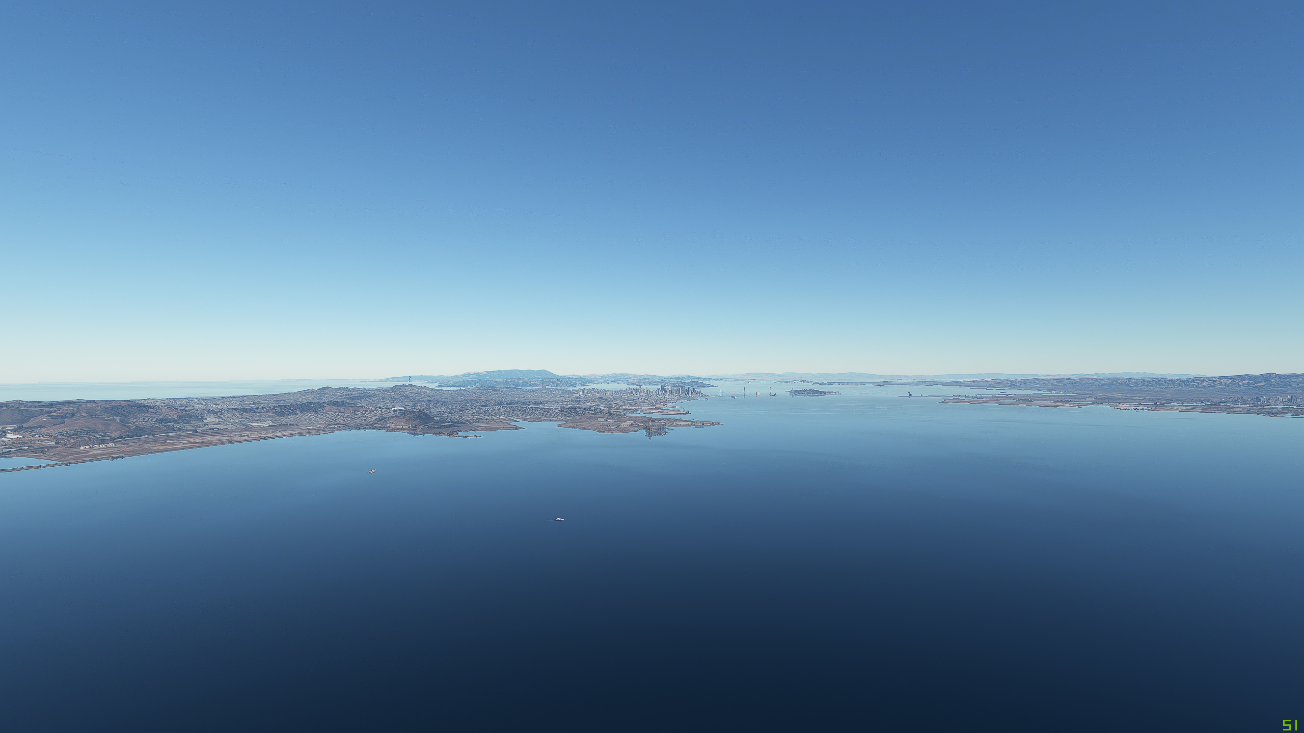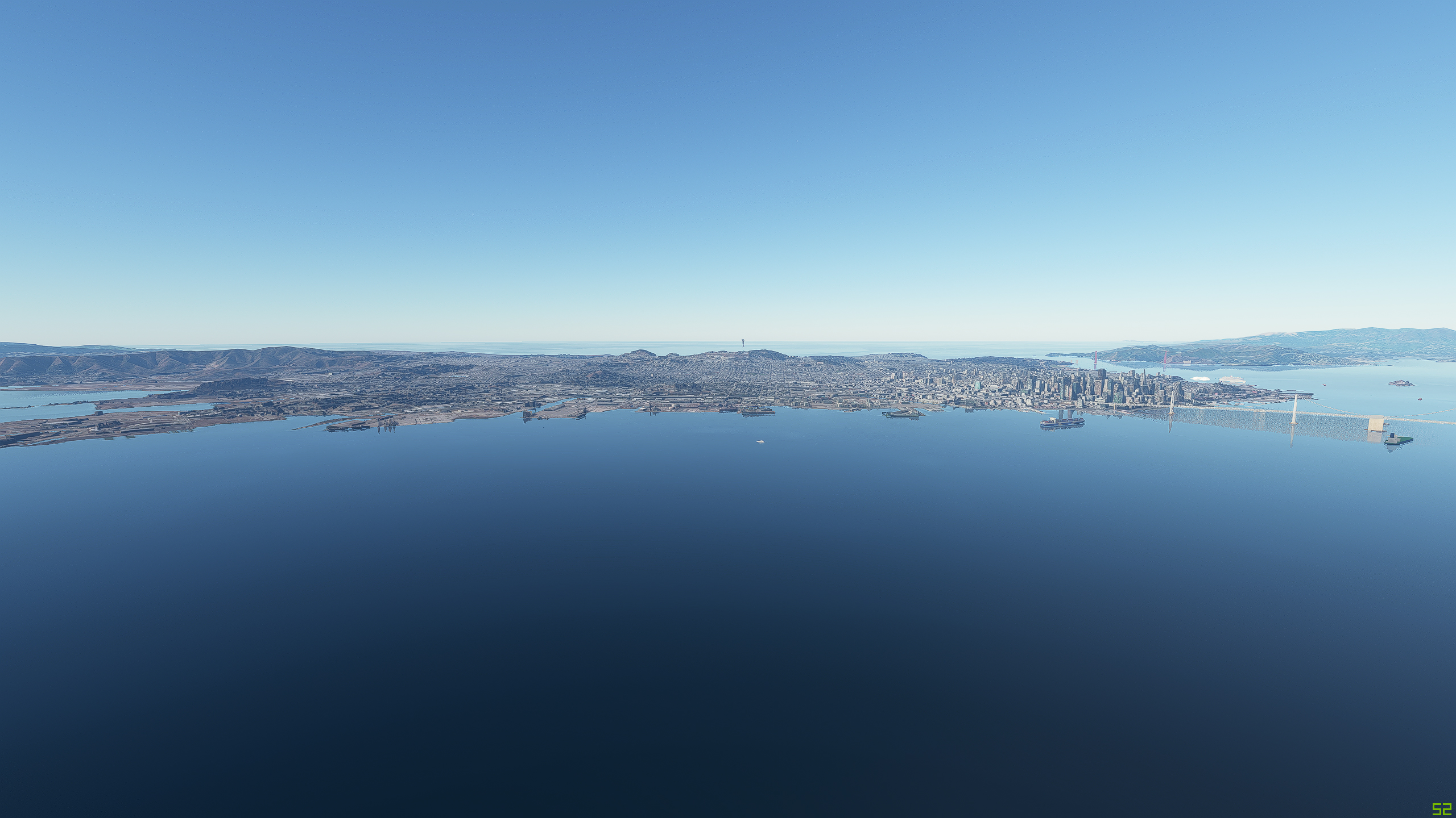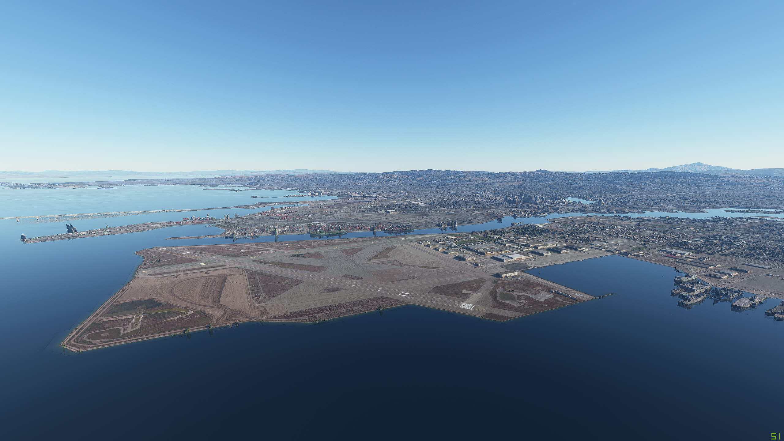 Couple of screenshots I just took near San Francisco. 2000ft altitude, but I;m not sure exactly where you took your pics from to try to replictae. If you take them with the drone and not have the plane in the way, it would be easier to see where you took them.