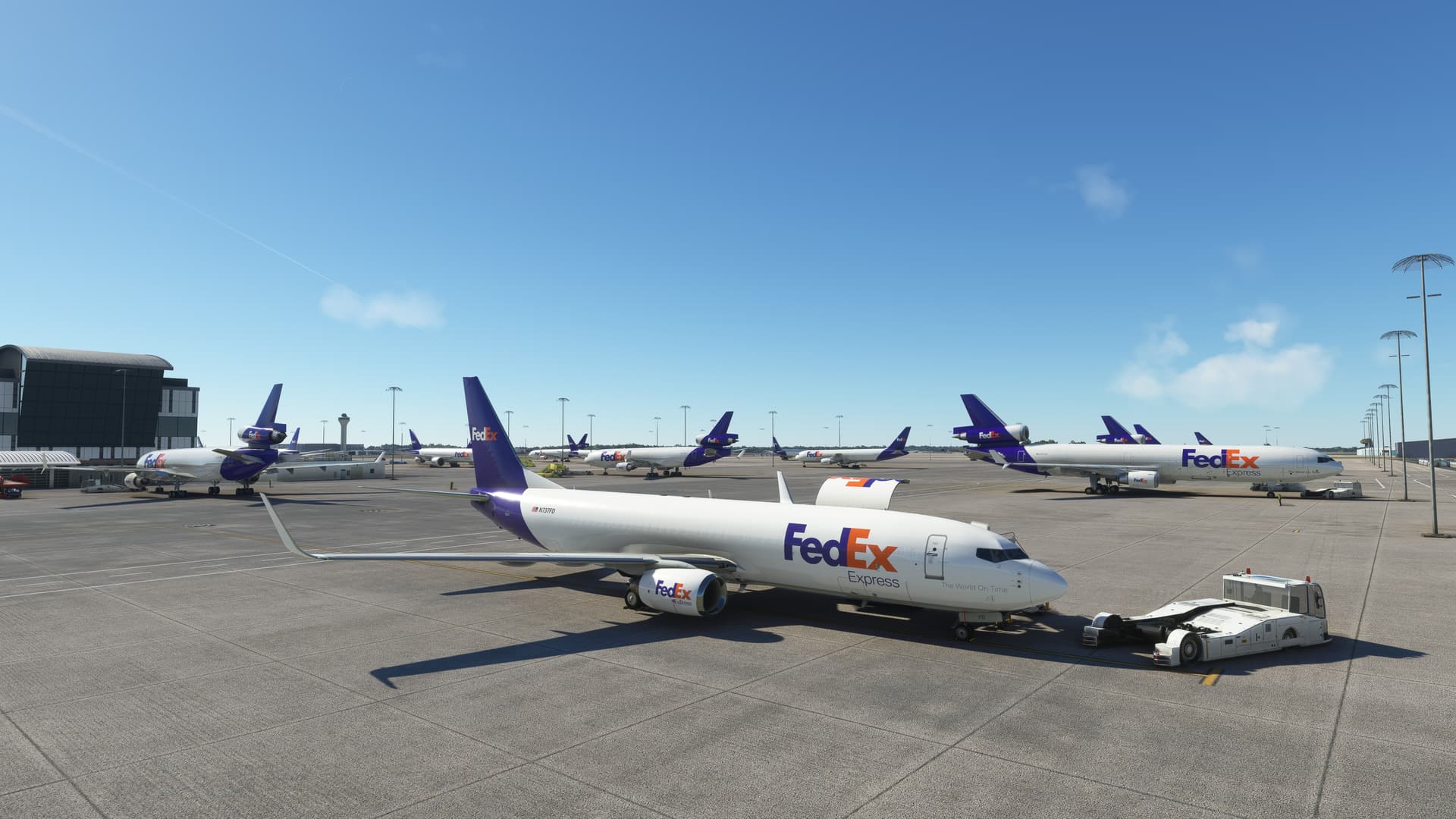Axonos has developed KMEM with a fully modeled FedEx hub. They appeared to be literally days from release but SU8 caused issues with the project. They were waiting for support and documentation from Asobo to fix the problem, but in a post earlier this week they stated the project is now halted due to recent events affecting the artist. They’ve posted some great preview shots over the last few months on their discord server, the FedEx hub facilities and aprons look fantastic. Hopefully we’ll see an eventual release someday.