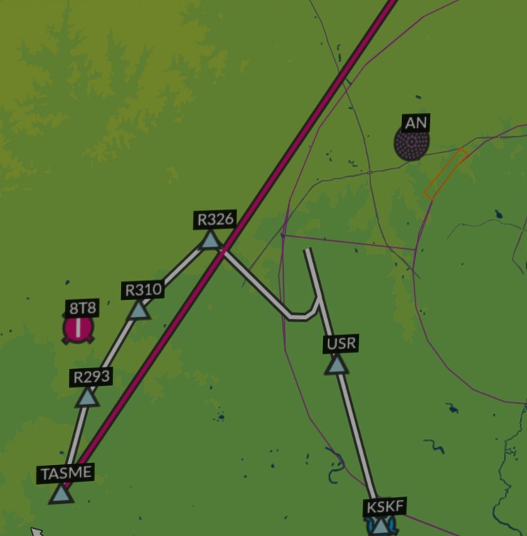 Here is the ILS Y Rwy 16 approach into KSKF via TASME. The approach doesn’t seem to have the FAMDO approach fix and so chucks in a USR fix. This has the effect of incorporating a 180 degree reversal prior to acquiring the localiser. Of course you can just manually switch from GPS to LOC prior to the anomaly which will get you down ok although the resulting approach can be a little shorter than normal. All just a bit annoying if you’re not prepared for it.