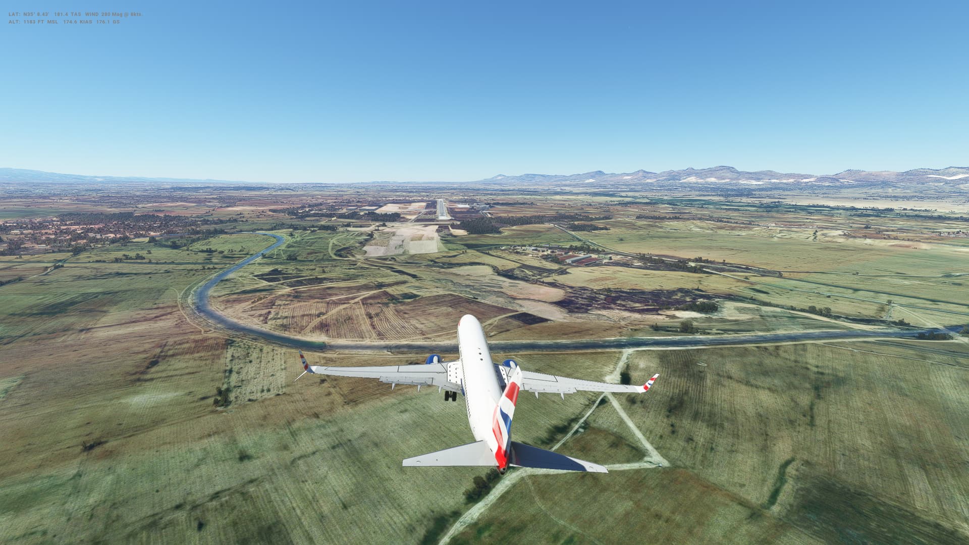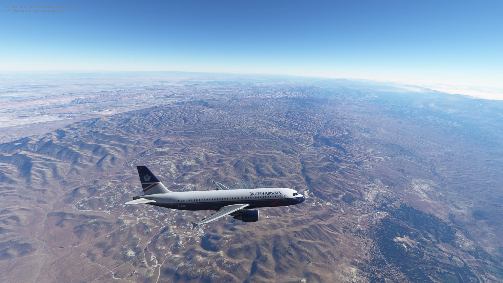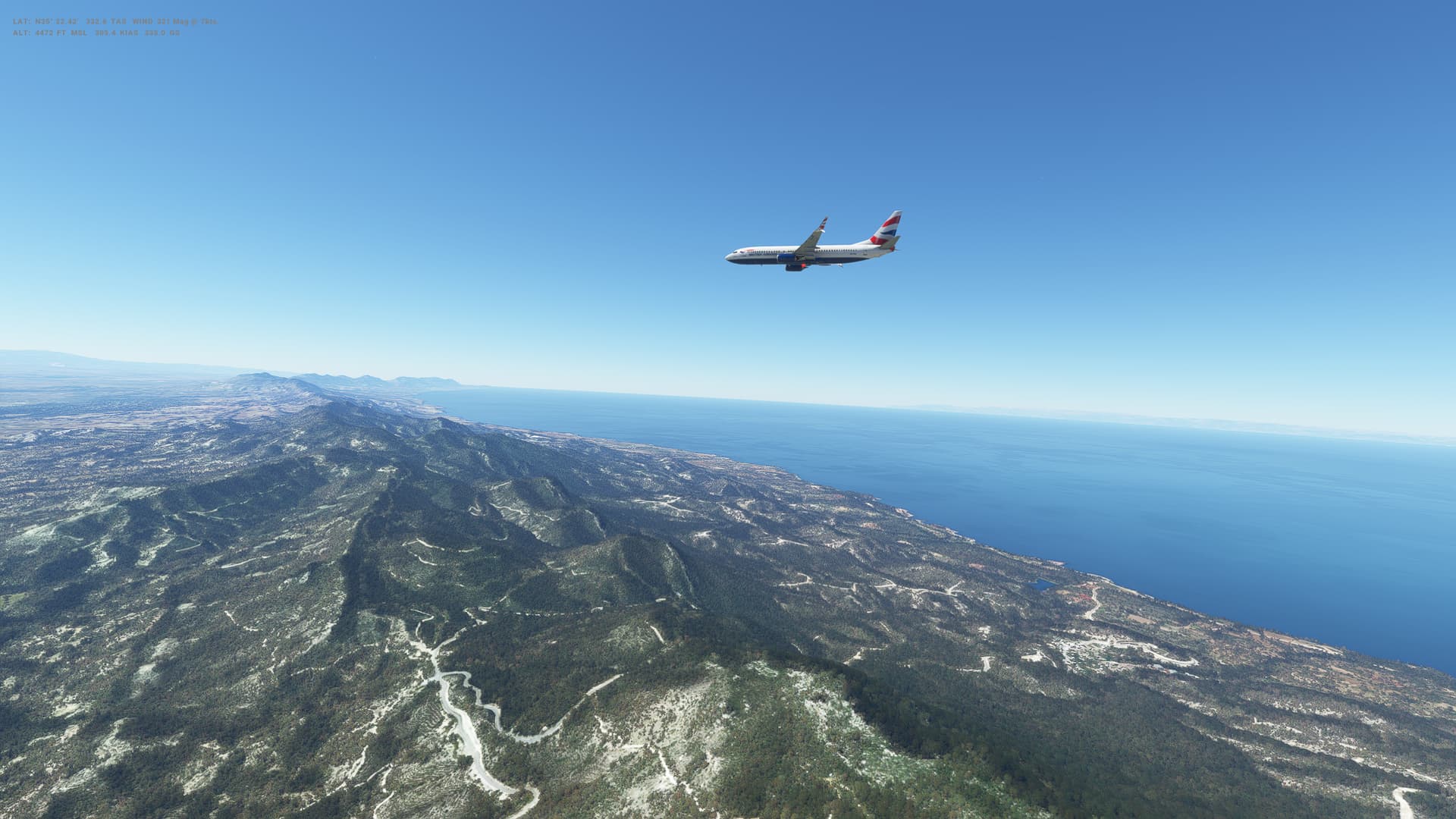 Another relatively short trip today, across the Med to Cyprus. We’re landing today at LCEN or Ercan Internatinal Airport. This proved more challengng than expected as Navigraph has no airport charts for LCEN - which seems a little odd. That meant I had to figure out how to line up using the VOR at the airport and do a visual manual landing. That bit turned out to work OK - the first landing attempt had to be aborted though as I was way too high - and nearly had a moment trying to do the go around. Definitely more practice needed for that, and I suspect I had some very sick passengers in the back.