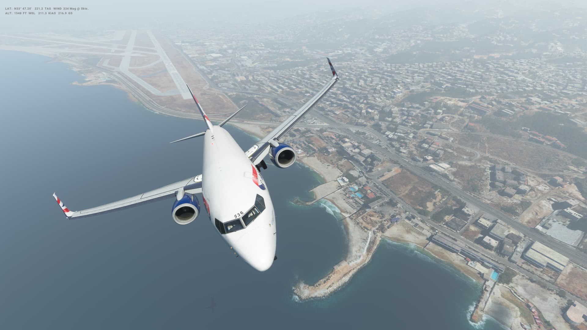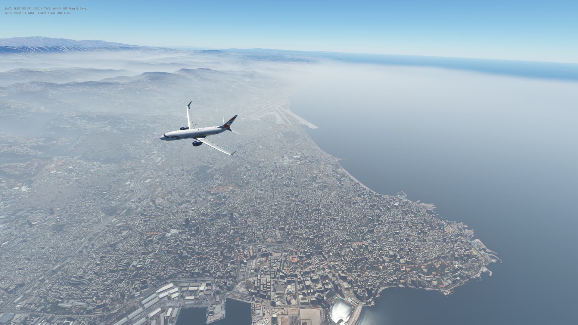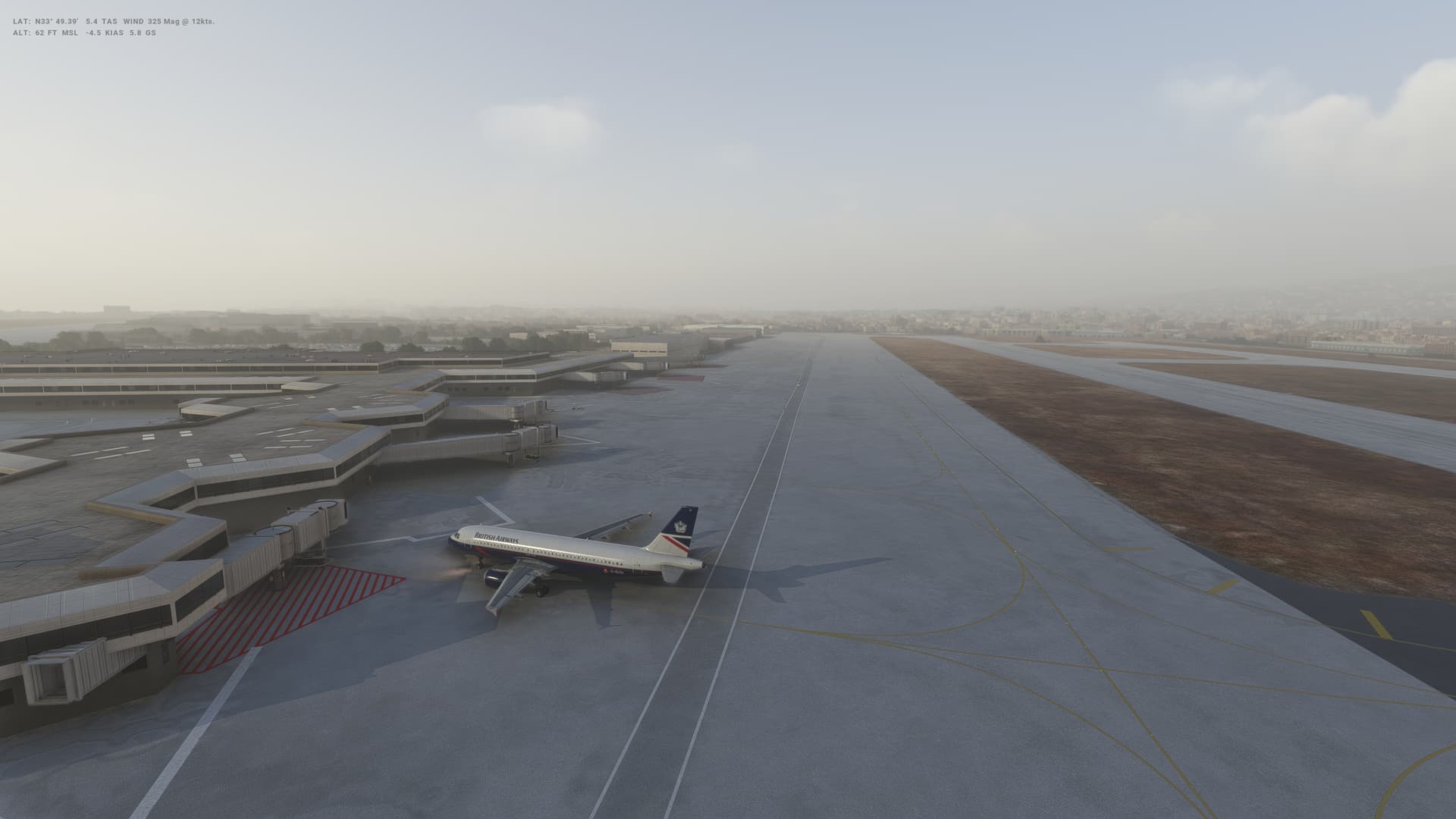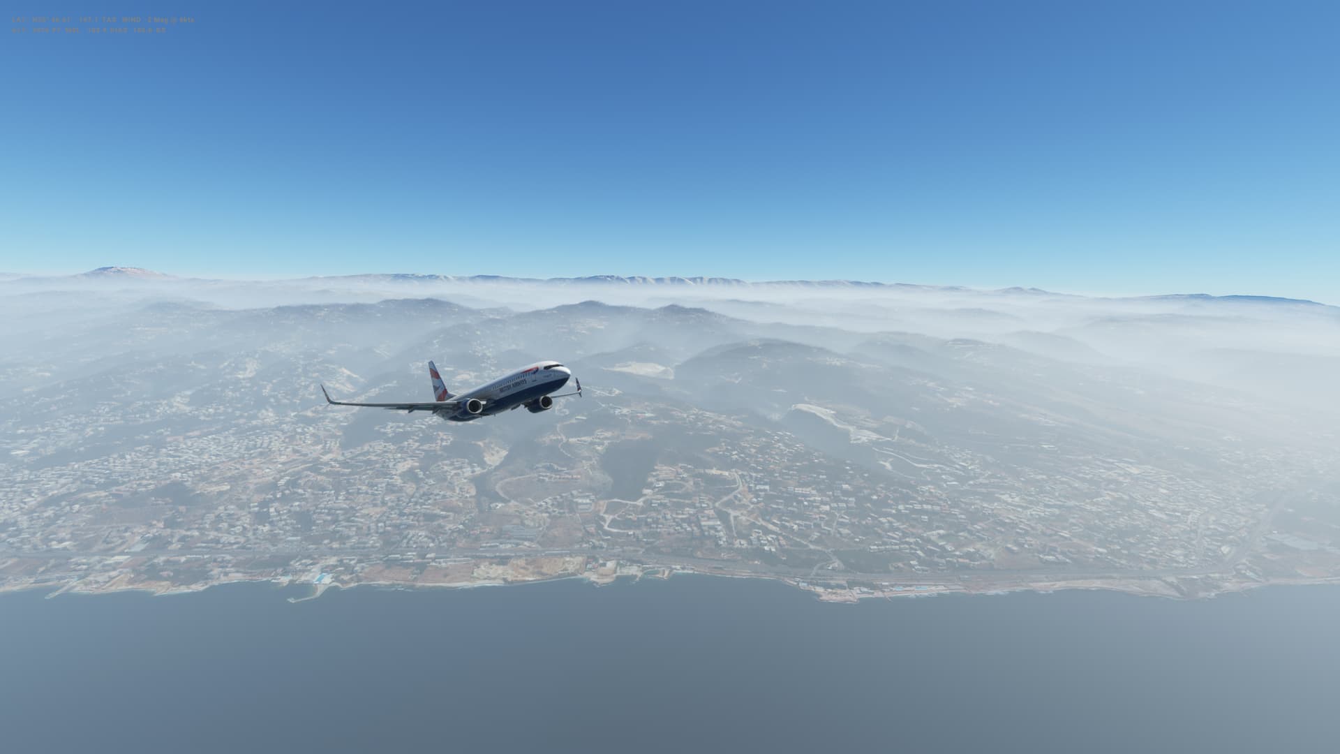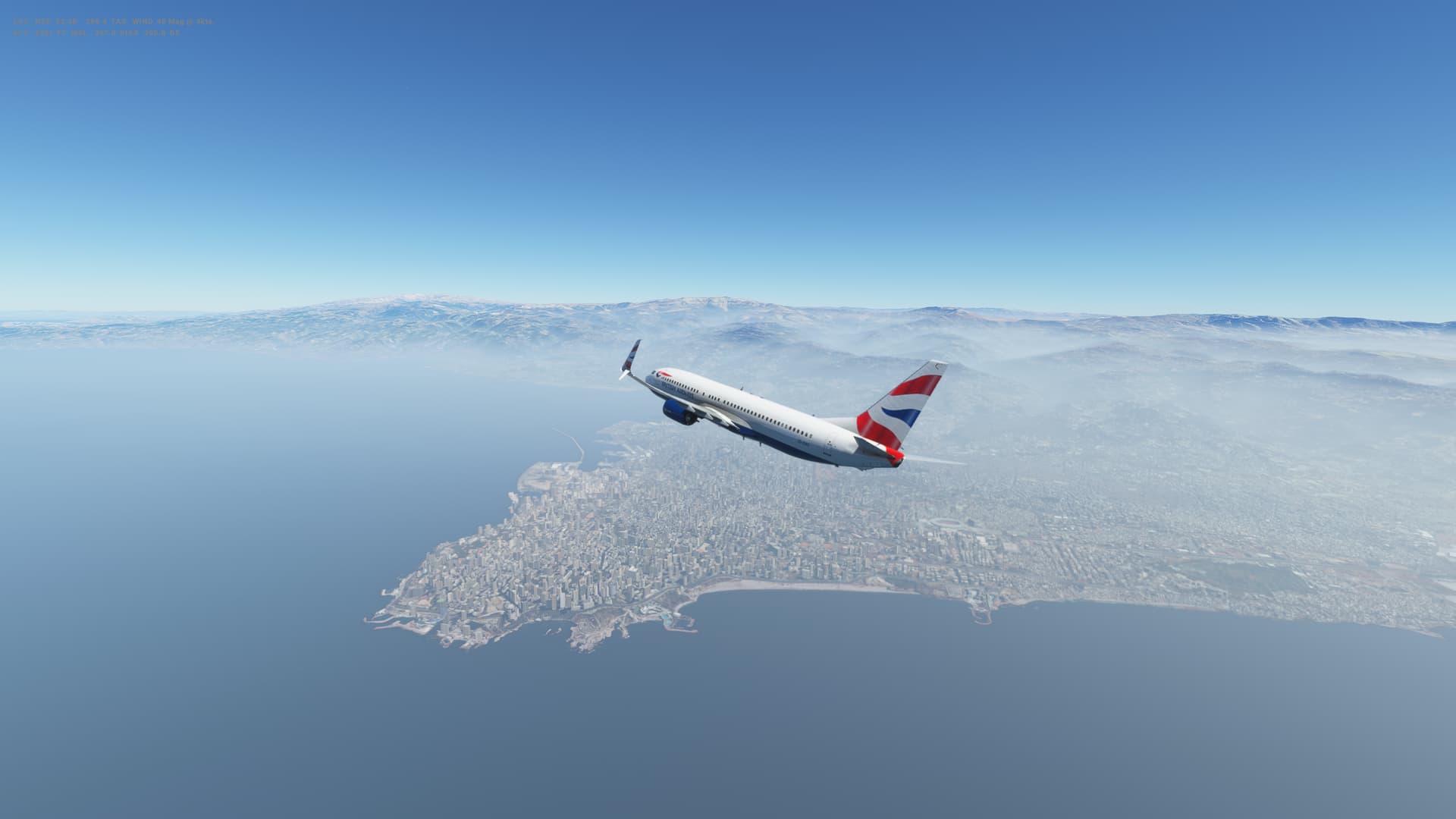 Today’s leg is very short - just 57 miles over the globe, although a bit longer by the time we follow our routes and waypoints. Nice clear morning in Damascus with barely a cloud in the sky as we head East to the Mediterranean coast and Rafic Hariri airport in Beirut. A bit more cloudy on approach and hazy on landing though.