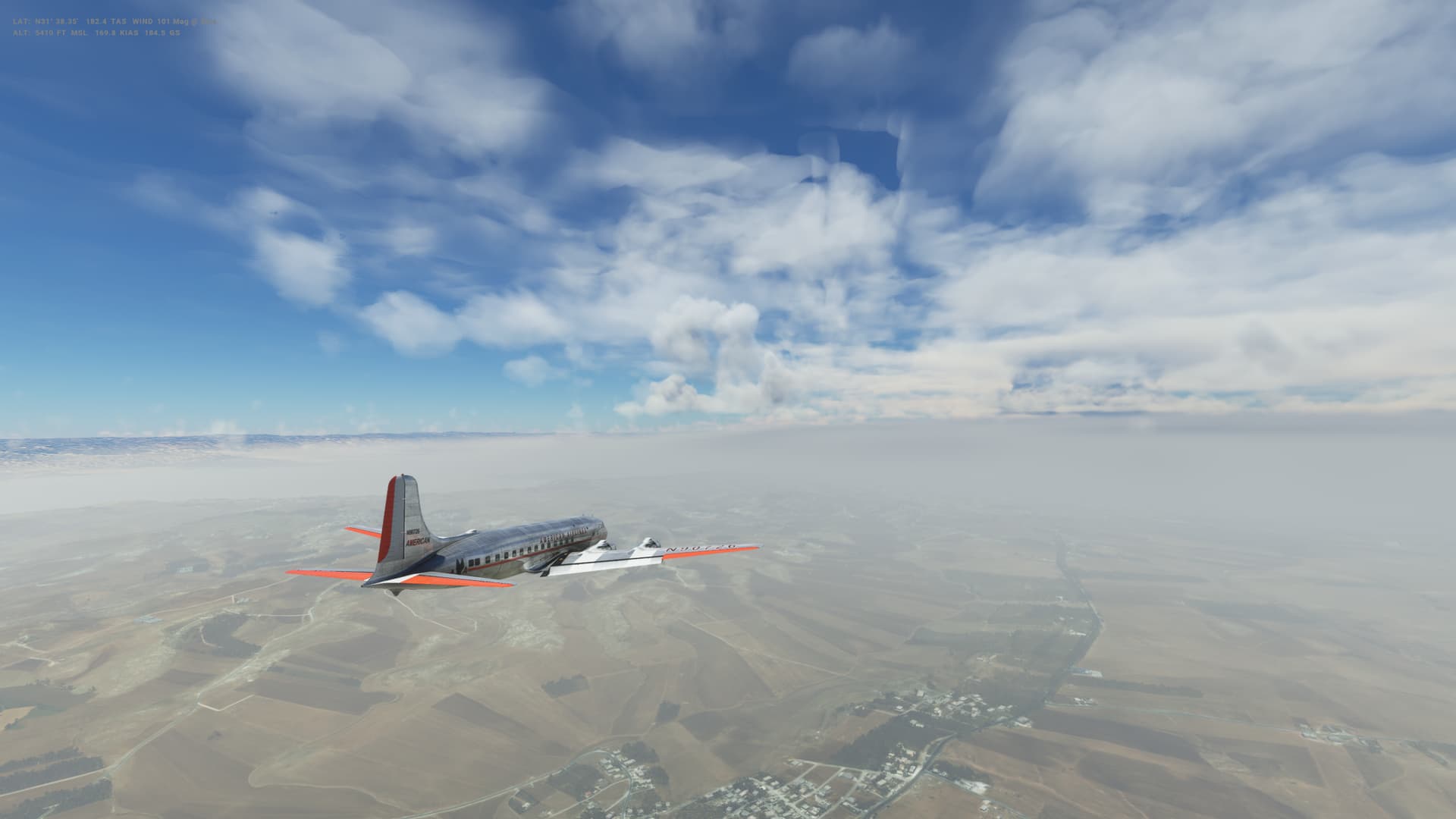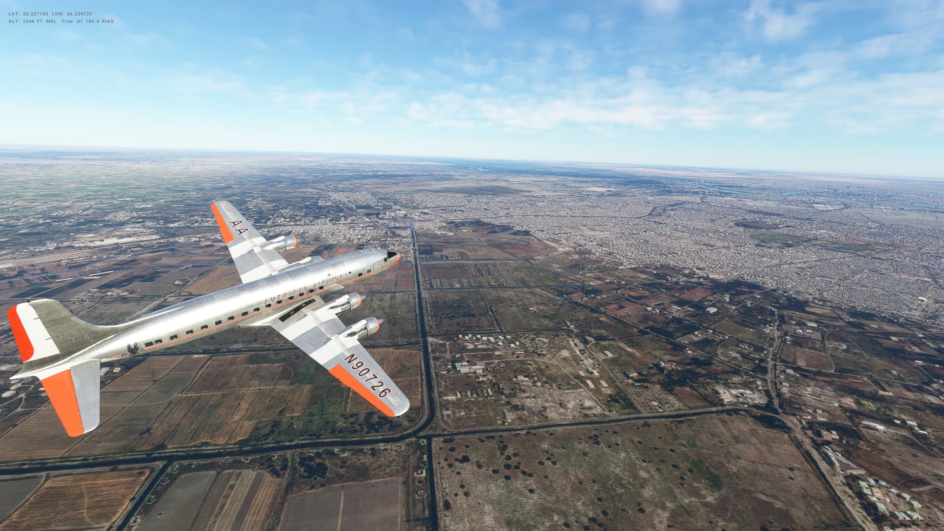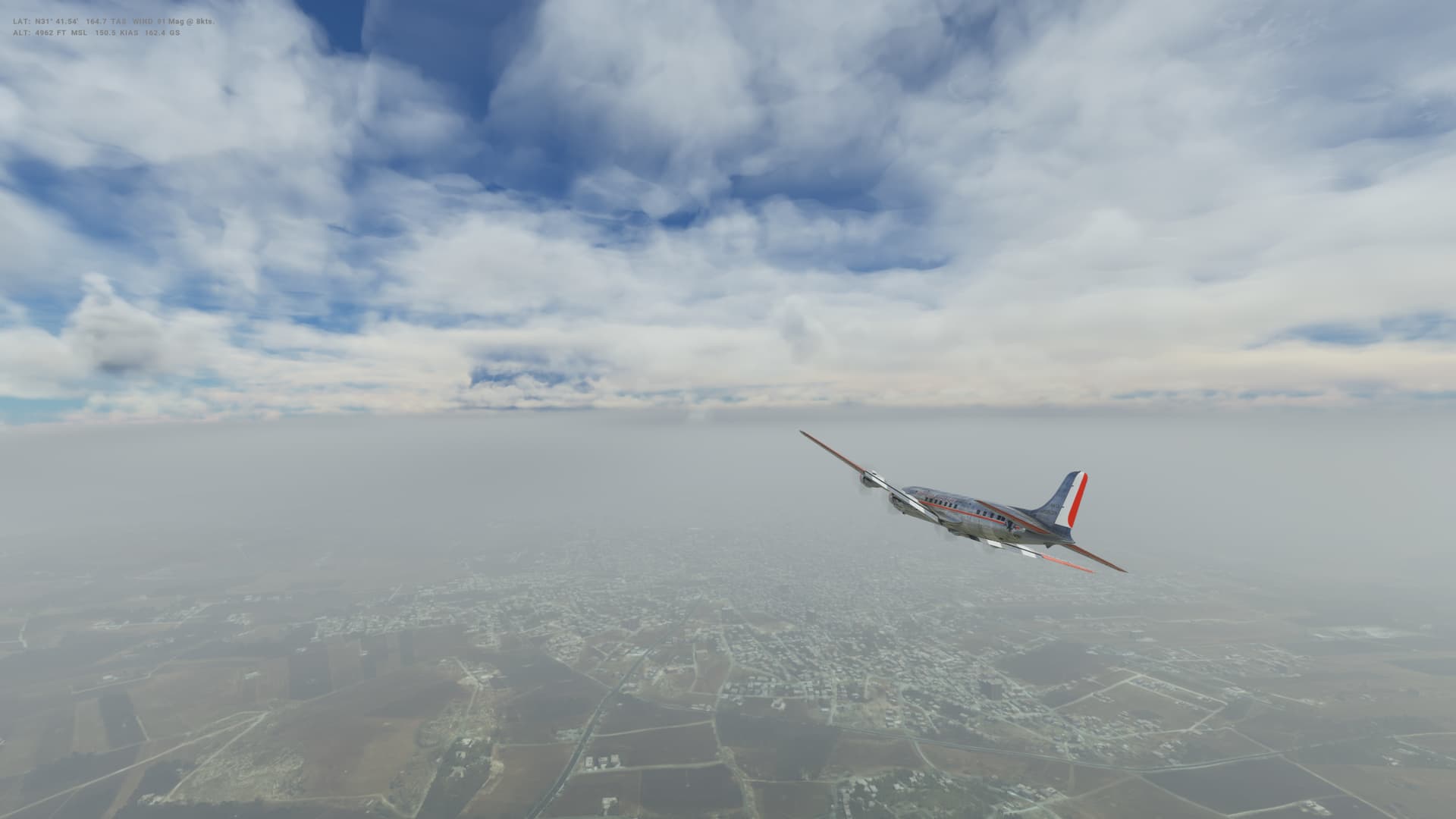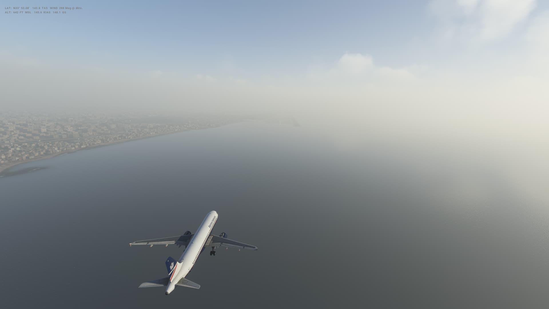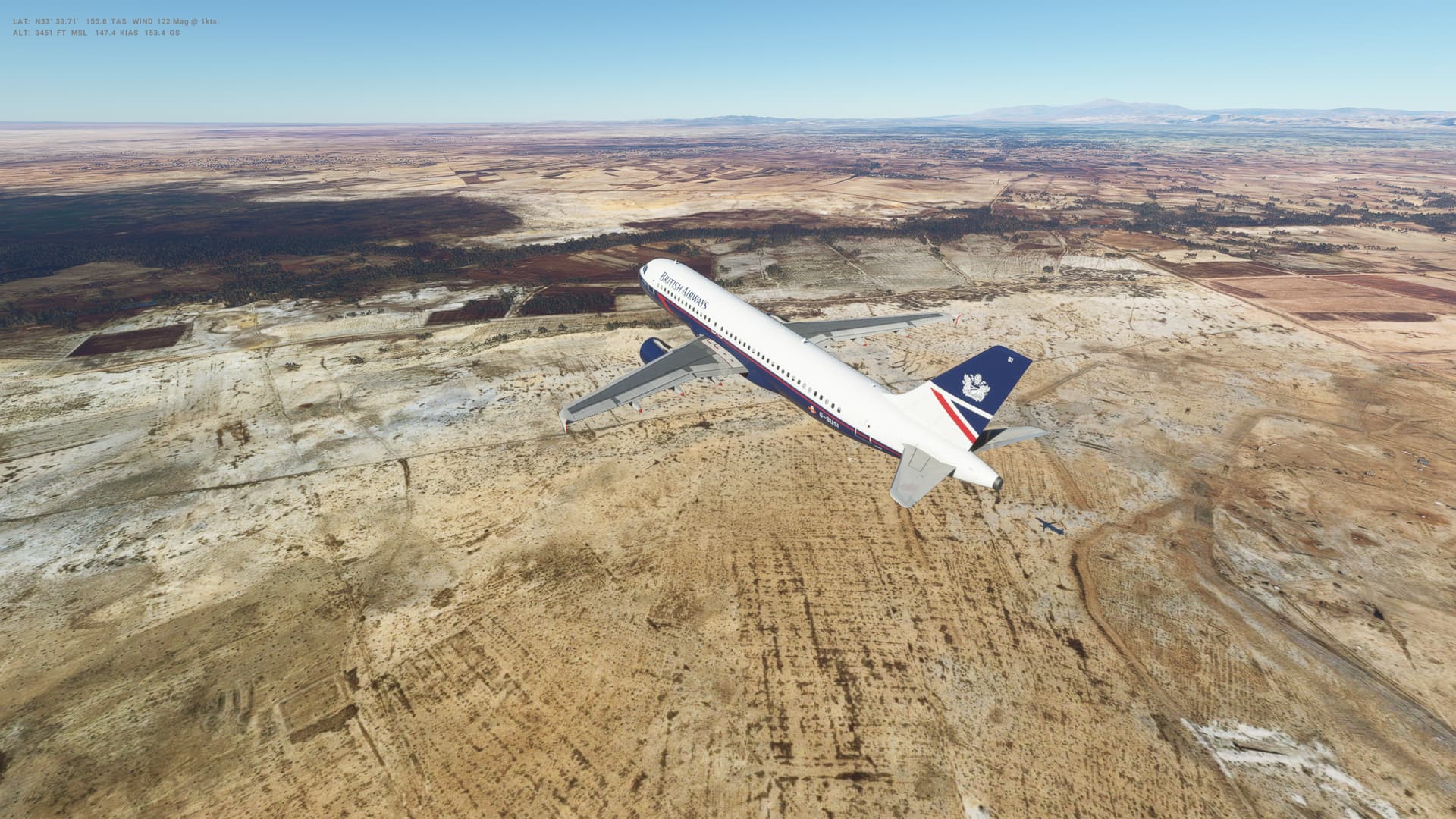 Today’s leg is very short - just 57 miles over the globe, although a bit longer by the time we follow our routes and waypoints. Nice clear morning in Damascus with barely a cloud in the sky as we head East to the Mediterranean coast and Rafic Hariri airport in Beirut. A bit more cloudy on approach and hazy on landing though.