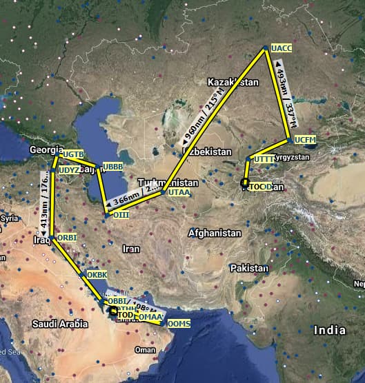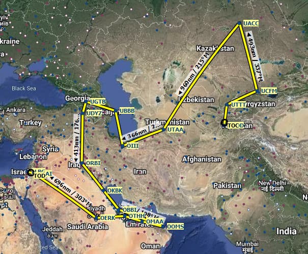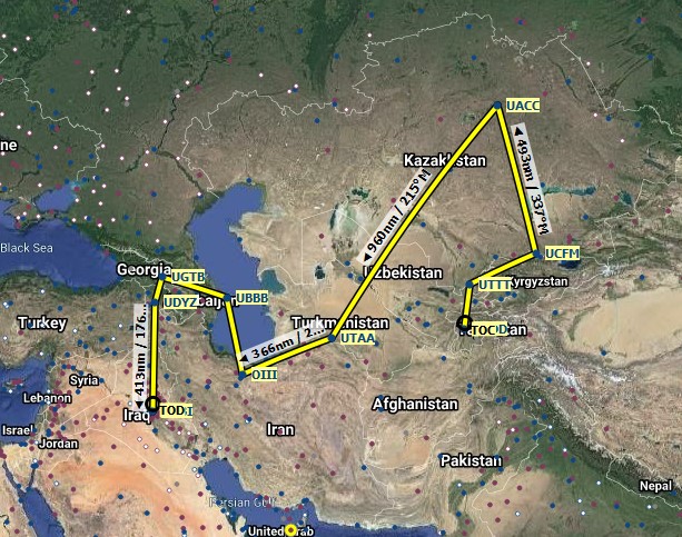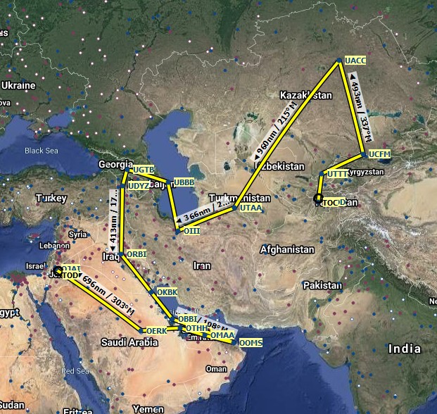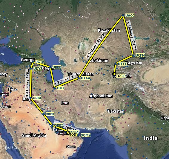 Leg 6: Tehran (OIII), Iran to Baku (UBBB), Azerbaijan