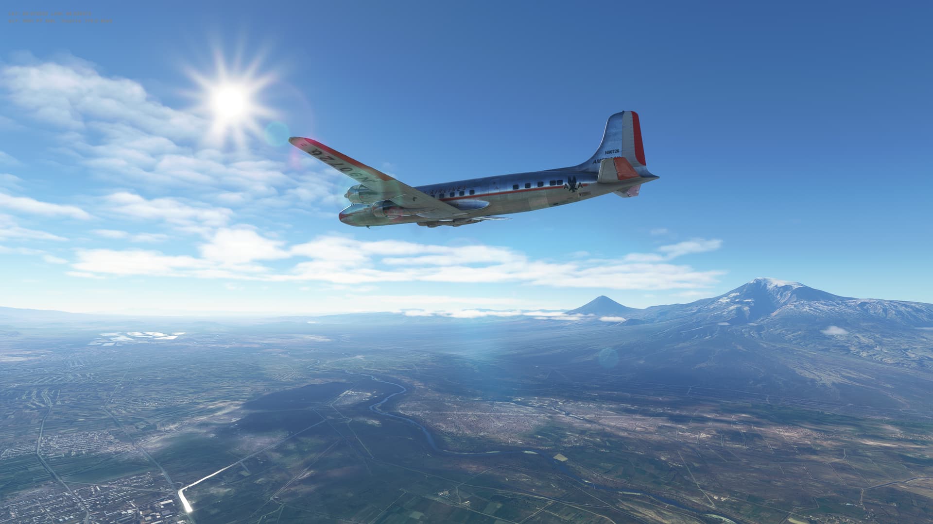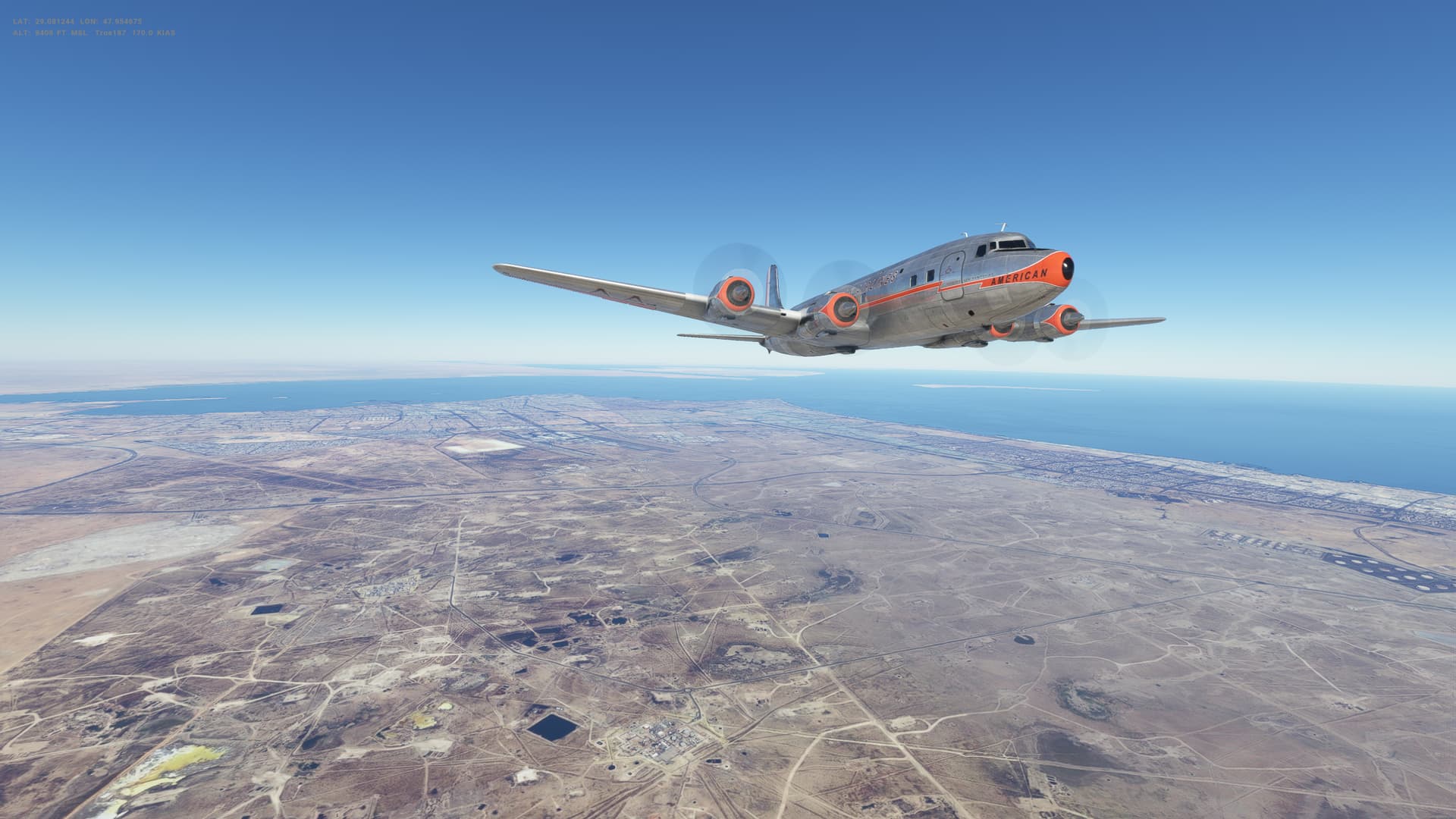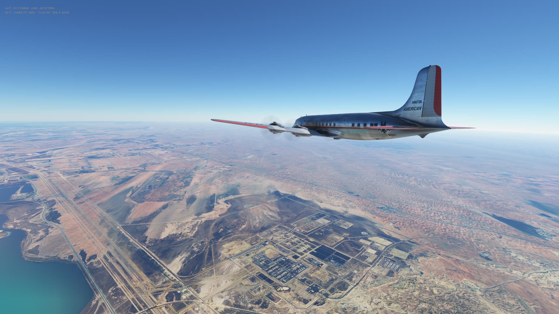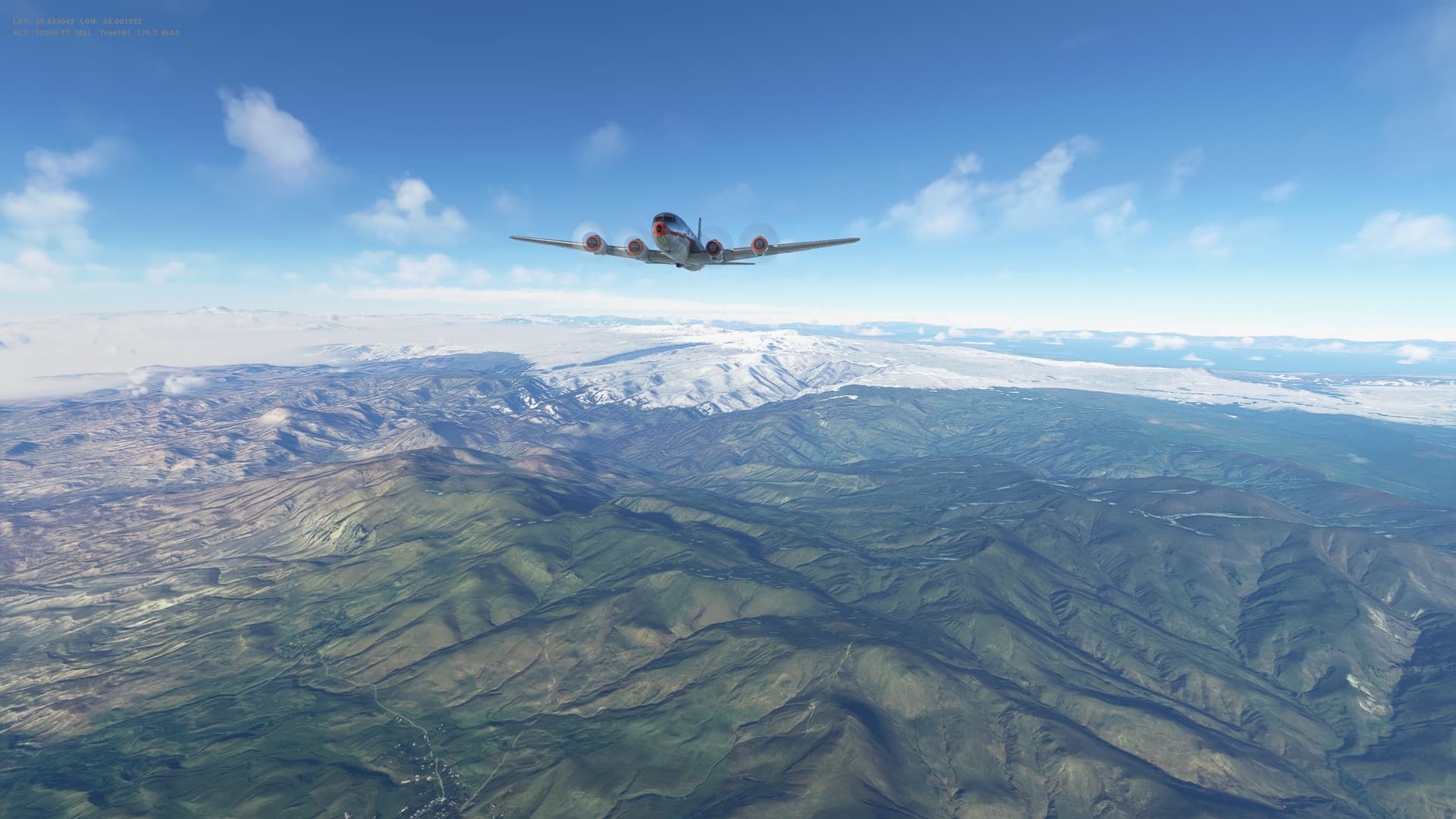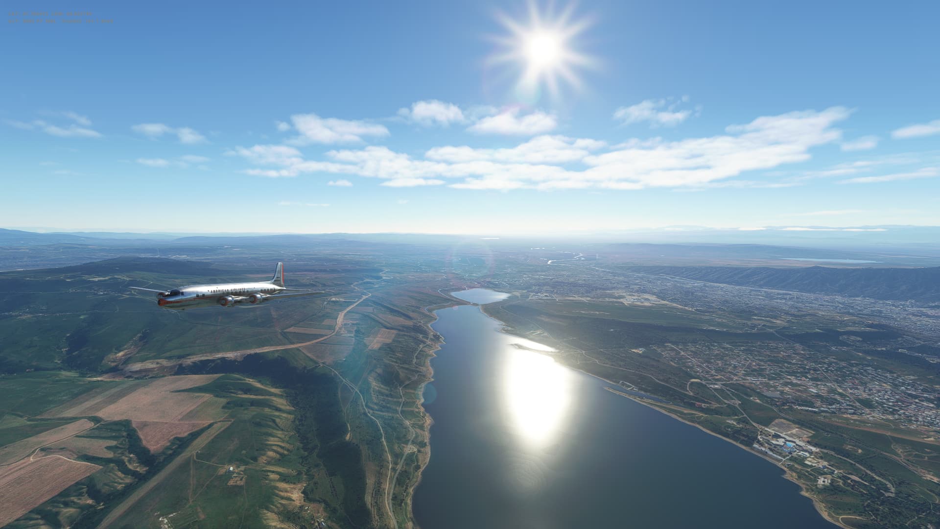 Leg 6 takes us back North, over the Caspian Sea to Baku. Much of this flight is over water, but the scenery at the start is spectacular as we cross the mountains at the Southern end of the Caspian. A shortish flight, just under 300 Nm as the crow flies. Once again the weather is beautiful.