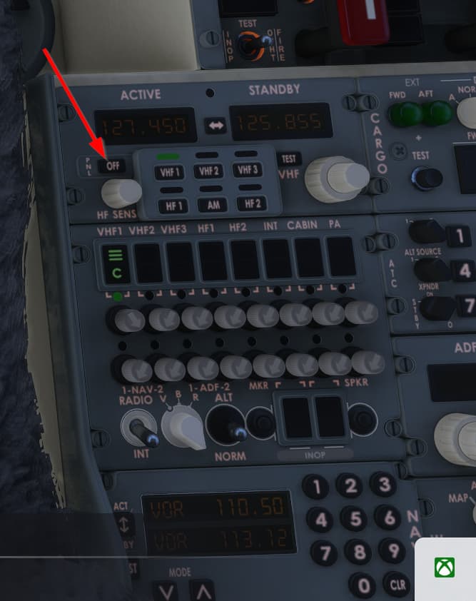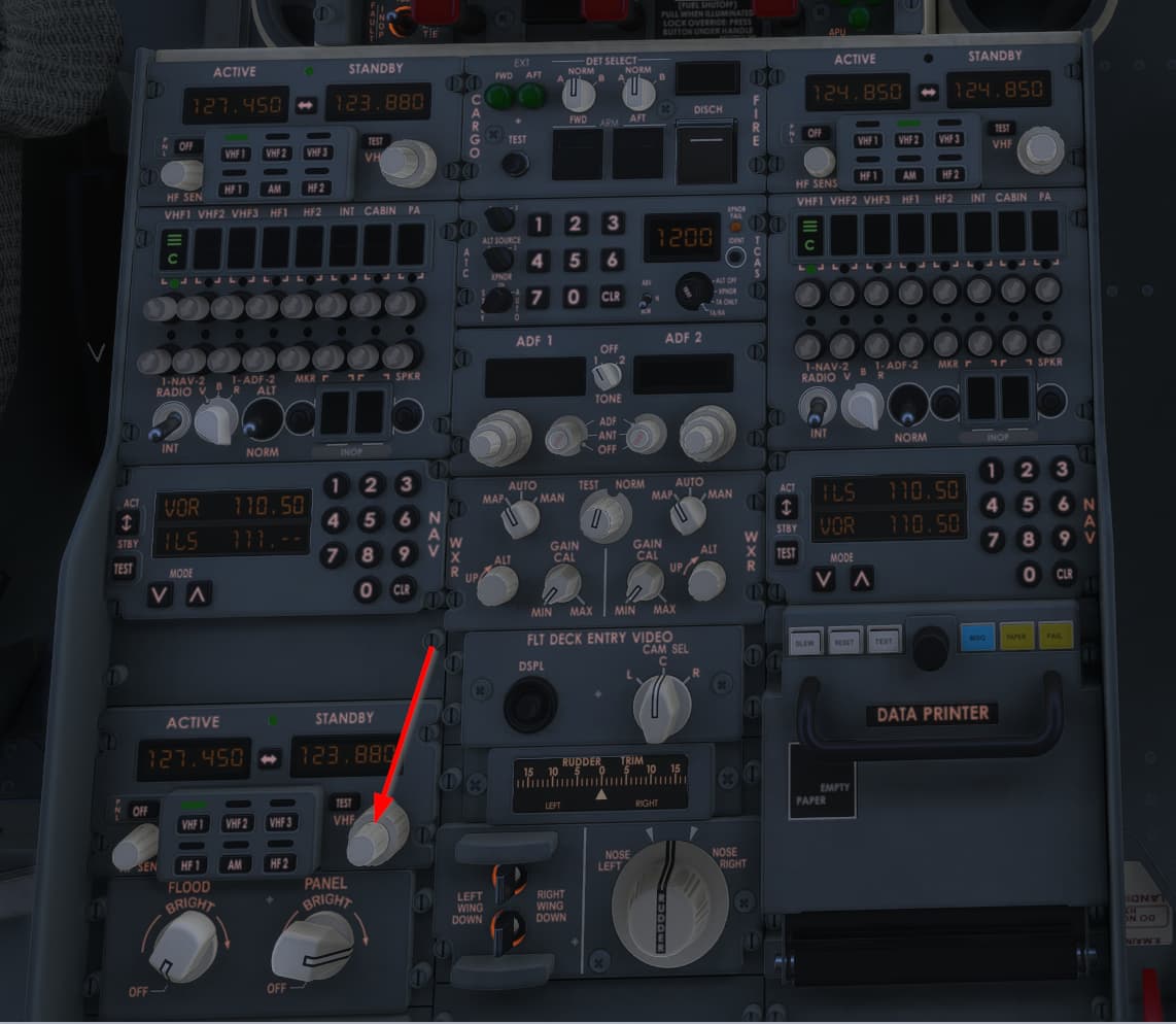 All the numeric VHF dials lighting are tied to the main panel backlighting dial to the bottom left of the console. So just turn it to the max to see the numeric frequencies lit up They shouldn’t be controlled this way, so it’s a bug. Same goes for all the numeric dials in the OHP tied to backlighting dial up there.