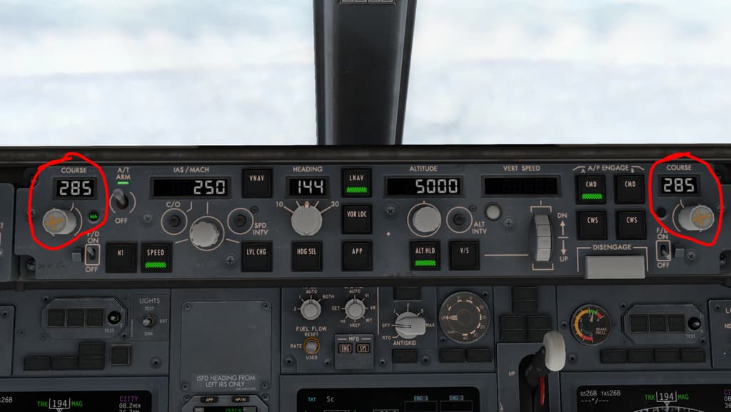 Secondly both the course dials on the MCP should be set to runway heading : 284 degrees