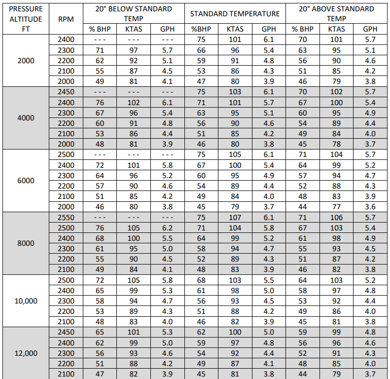 - Establish a cruise altitude and RPM as documented in the POH. For example, 8,000 FT and 2300 RPM.