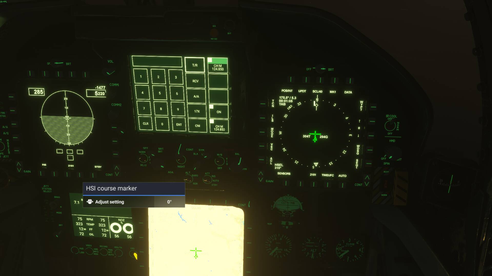 - See how moving the course selector does nothing, no lines displayed on the HSI, nothing